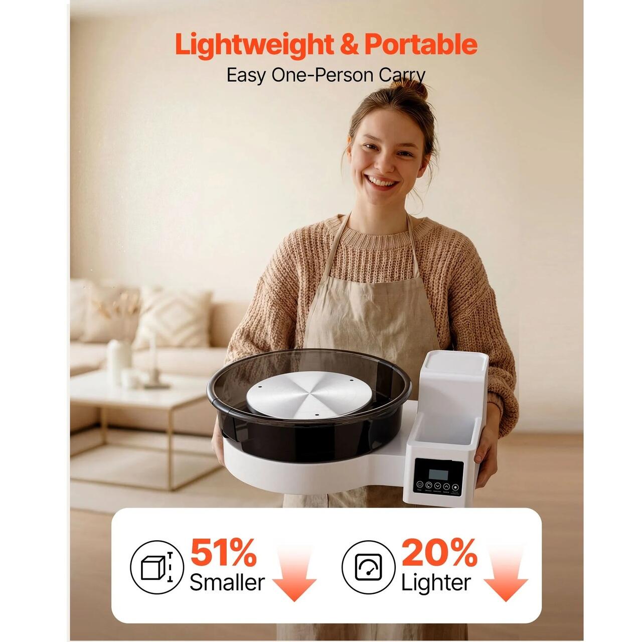 Design care economiseste spatiu: Construita pentru a maximiza spatiul tau creativ, aceasta roata de olar pentru adulti are un blat inovator, cu 50% mai mic decat modelele traditionale, ajutand la economisirea spatiului valoros din interior. Este usor de transportat si depozitat oriunde.