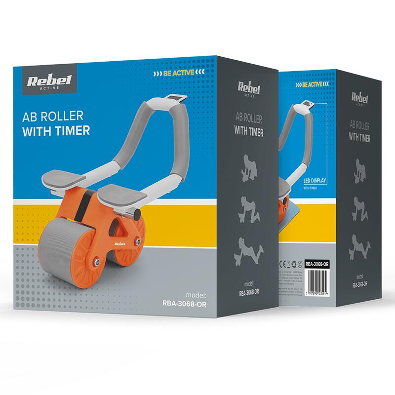 Roata pentru abdomen, Cronometru, max 150 kg, covoras 17 x 34 x 0.5 cm, PP, PPR, oțel, Portocalie