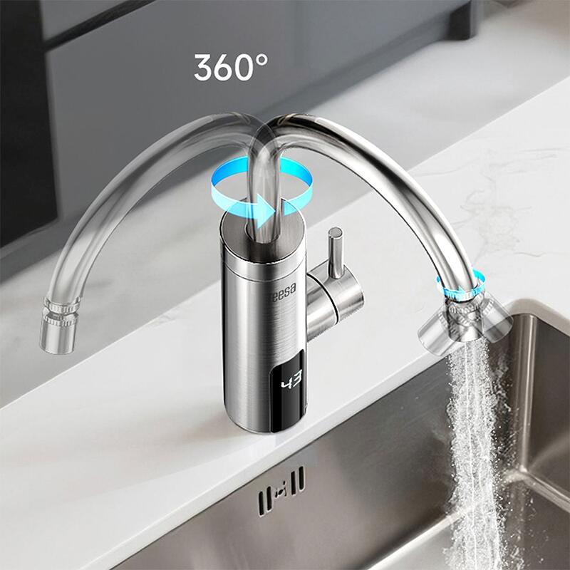 Robinet electric Instant 3000 W, Afisaj Led, Protectie la supraincalzire, Complet Inox, IPX4, Brat rotativ