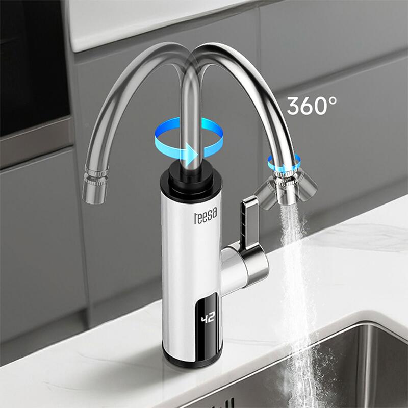 Robinet electric Instant 3000 W, Afisaj Led, Protectie la supraincalzire, Inox, IPX4, Brat rotativ, 2 l/min, Alb