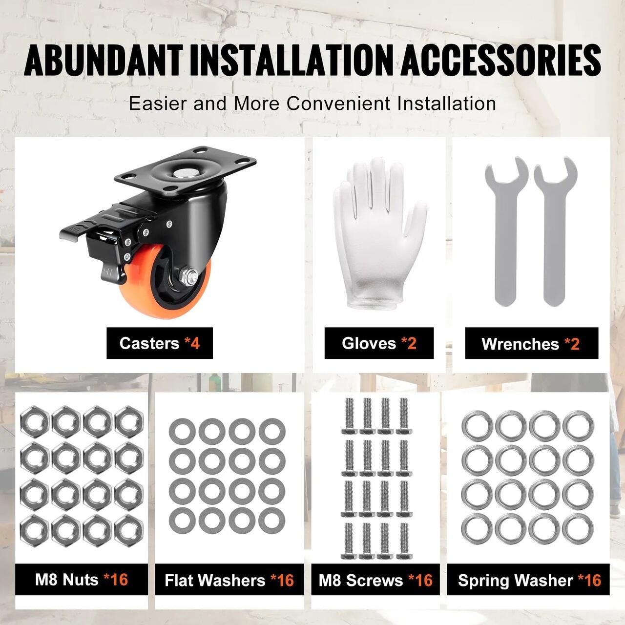 Set 4 roti pivotante, Frana dubla, Capacitate 113 kg/roata, Diametru 3 inch, PVC/Otel