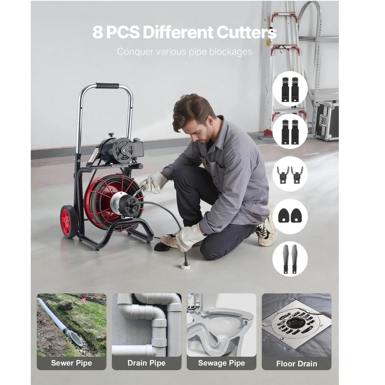 Cutite interschimbabile: Echipate cu 8 capete de taiere pentru a viza diferite tipuri de blocaje. Snecul nostru electric de canalizare este ideal pentru curatarea infundarilor din tevile de canalizare, chiuvete si toalete, ajutand la simplificarea intretinerii dificile si la eliminarea mirosurilor neplacute.