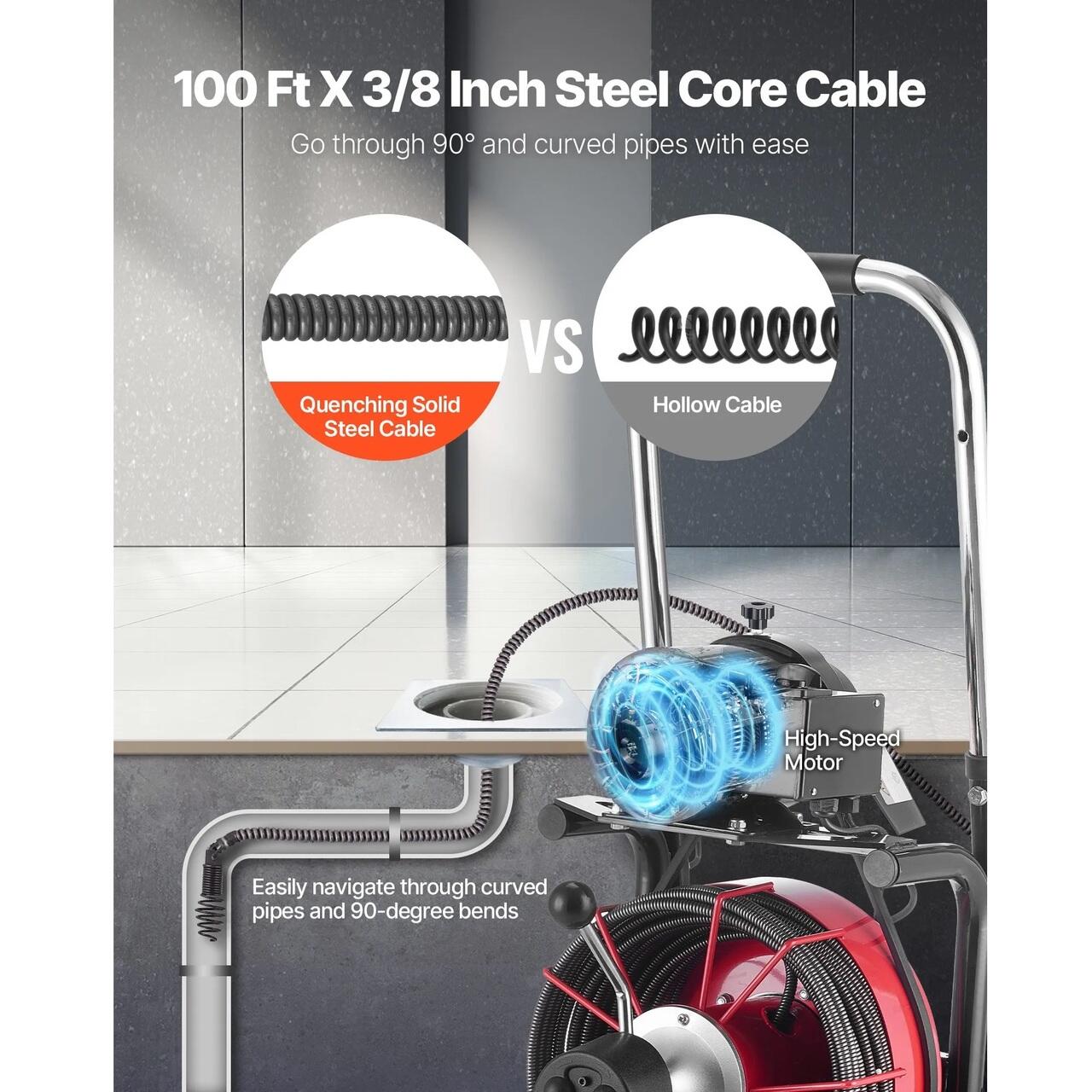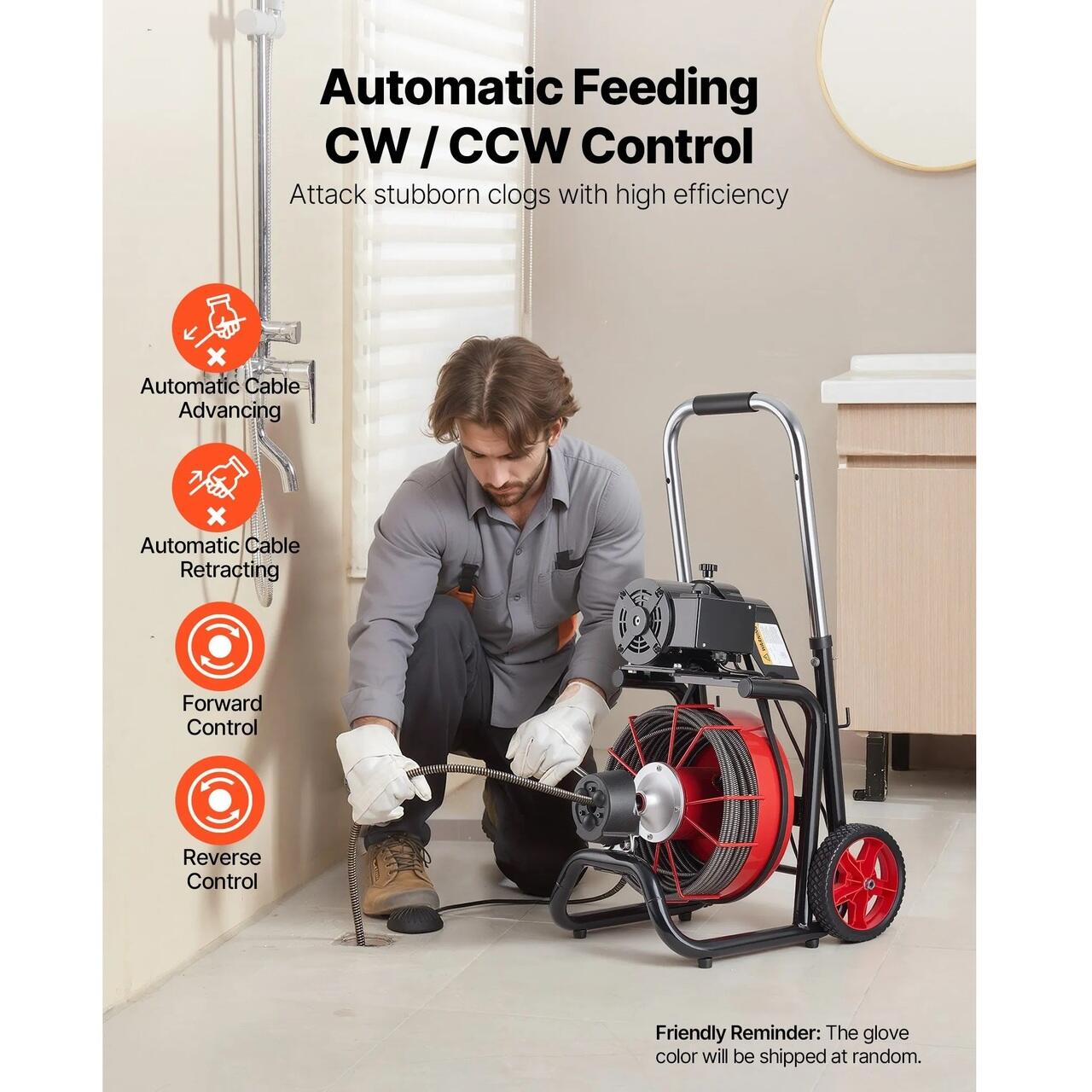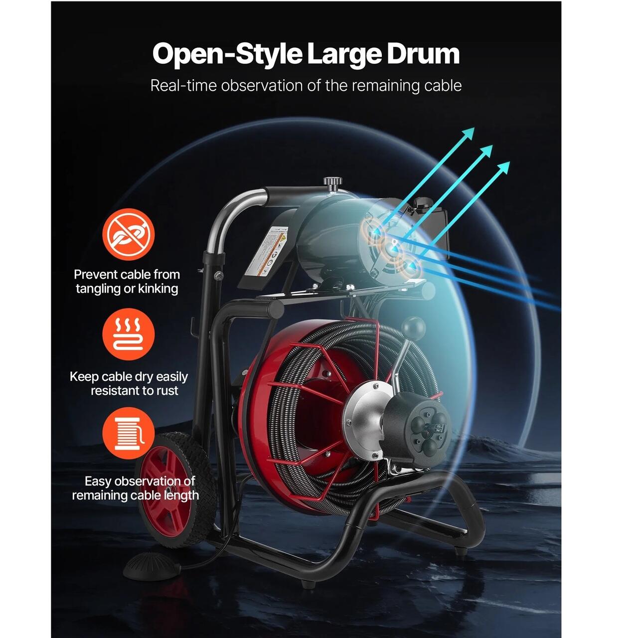 Combate blocajele persistente: Masina de curatat canalizare dispune de un sistem automat de alimentare pentru a introduce si scoate cablul din conductele de scurgere. Imbunatatita cu controlul in sensul acelor de ceasornic si un comutator de picior actionat de aer, gestionarea cablului devine mai usoara.