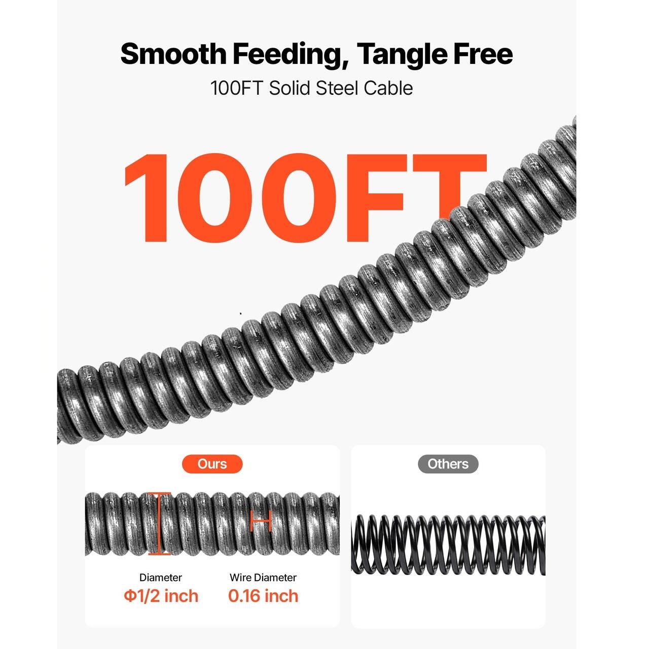Operare usoara si taietoare versatile: Imbunatatite cu control CW/CCW si un comutator de picior actionat cu aer, gestionarea cablurilor este fara efort. Impreuna cu cele 8 taietoare interschimbabile, spirala de canalizare gestioneaza diverse blocaje din tevile de scurgere, chiuvete, canalizari, toalete etc.