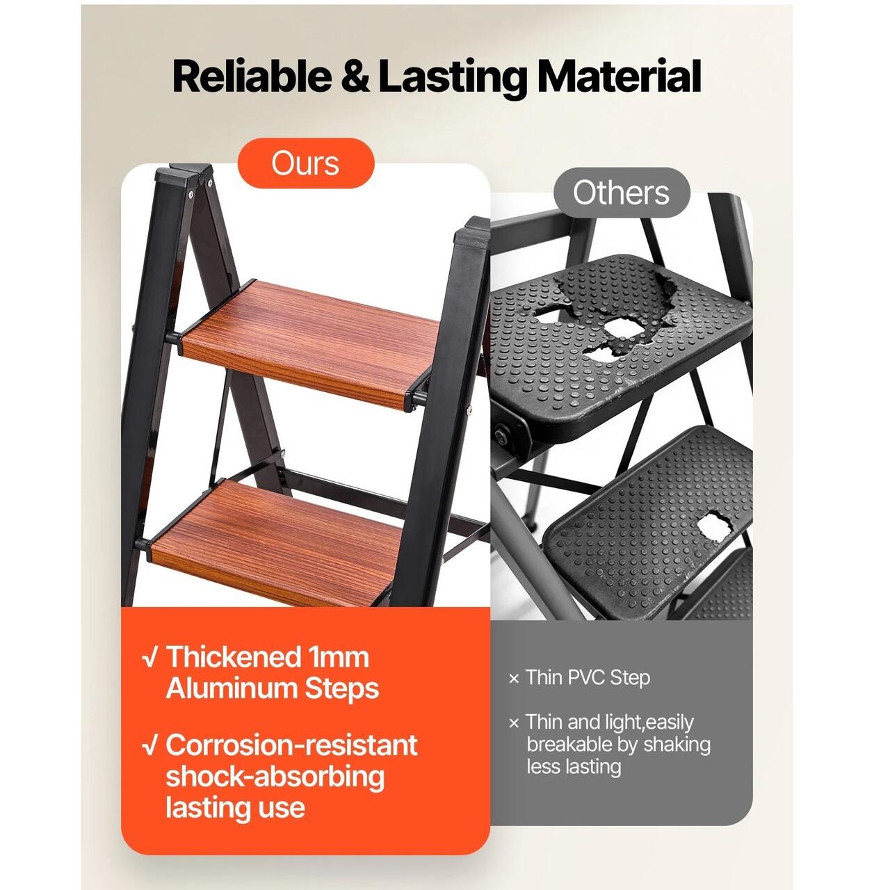 Capacitate de incarcare de 150 kg: Construita din tuburi groase superbe din otel carbon si o treapta din aluminiu cu textura de lemn, cu transfer termic excelent, rezistenta la rugina si umezeala, scara pliabila ofera un suport maxim de 150 kg, stabilitate de lunga durata in timp.