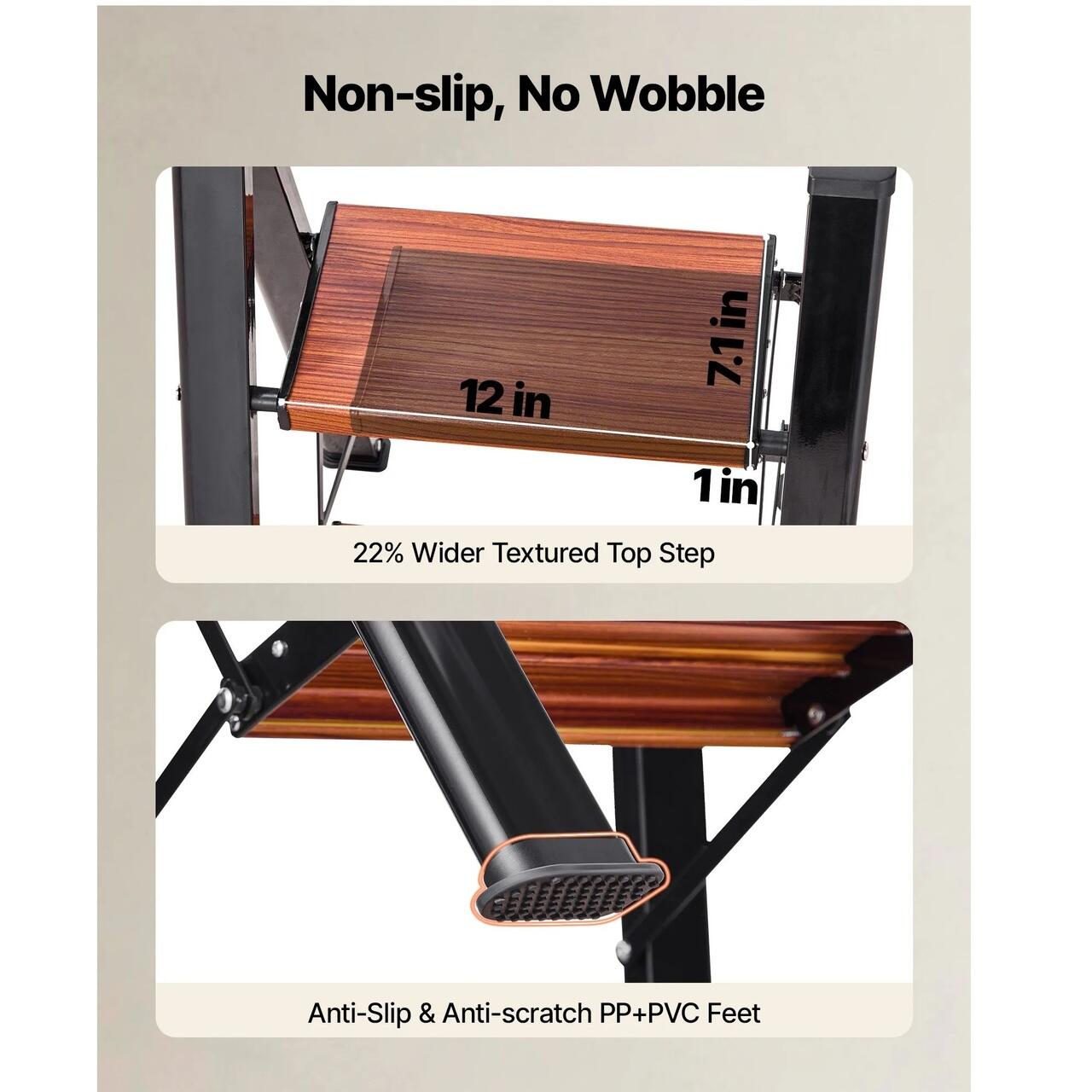 Pliabil si economiseste spatiu: Grosimea pliata se afla subtire in spatele usilor, dulapurilor sau colturilor, mentinand scara pregatita, dar discreta. Acest scaunel ofera un design antiderapant si sigur pentru utilizare cu incredere.