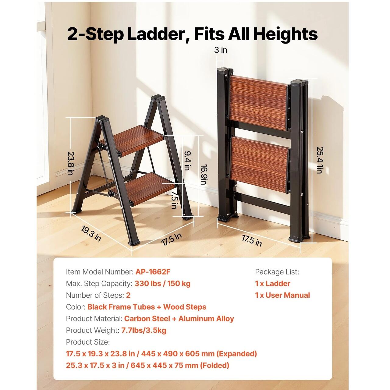 Scara pliabila cu 2 x Trepte Anti-derapante, Capacitate 150 kg, Otel/Aluminiu, 45 x 49 x 59 cm