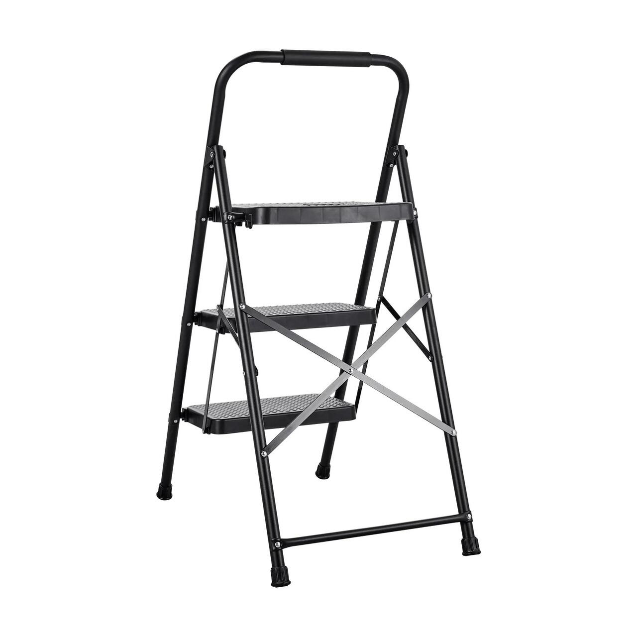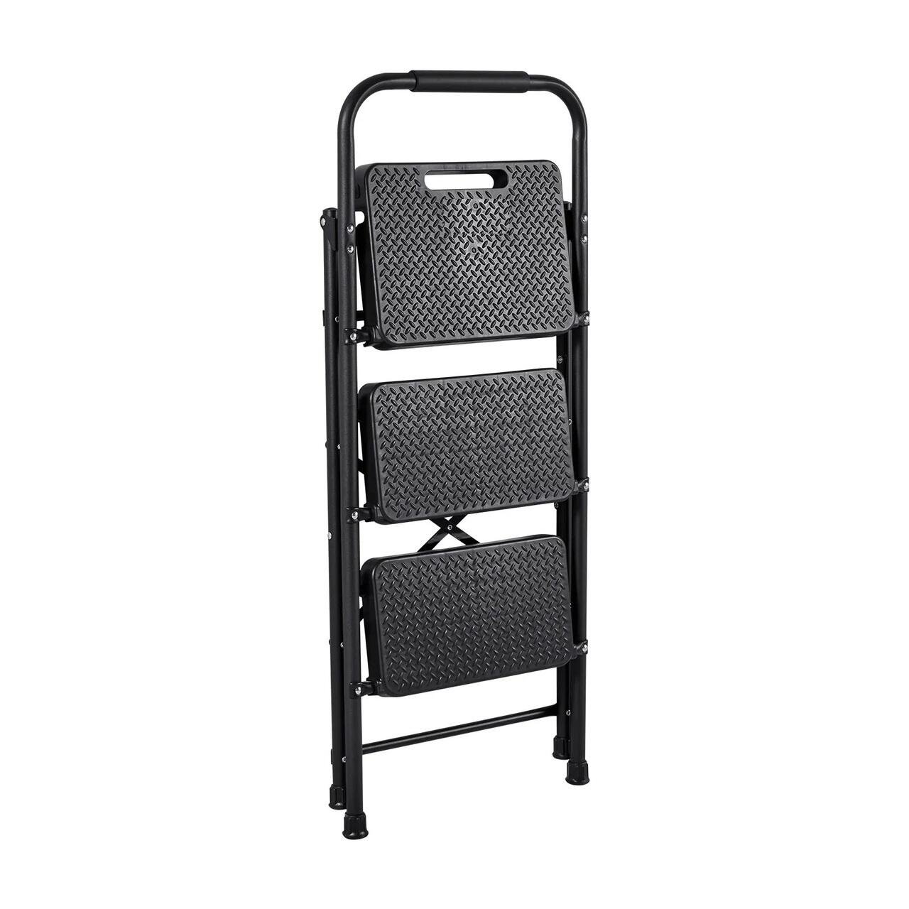 Scara pliabila cu 3 x Trepte Anti-derapante, Capacitate 272 kg, Otel, Negru, 1120 x 465 x 95 mm