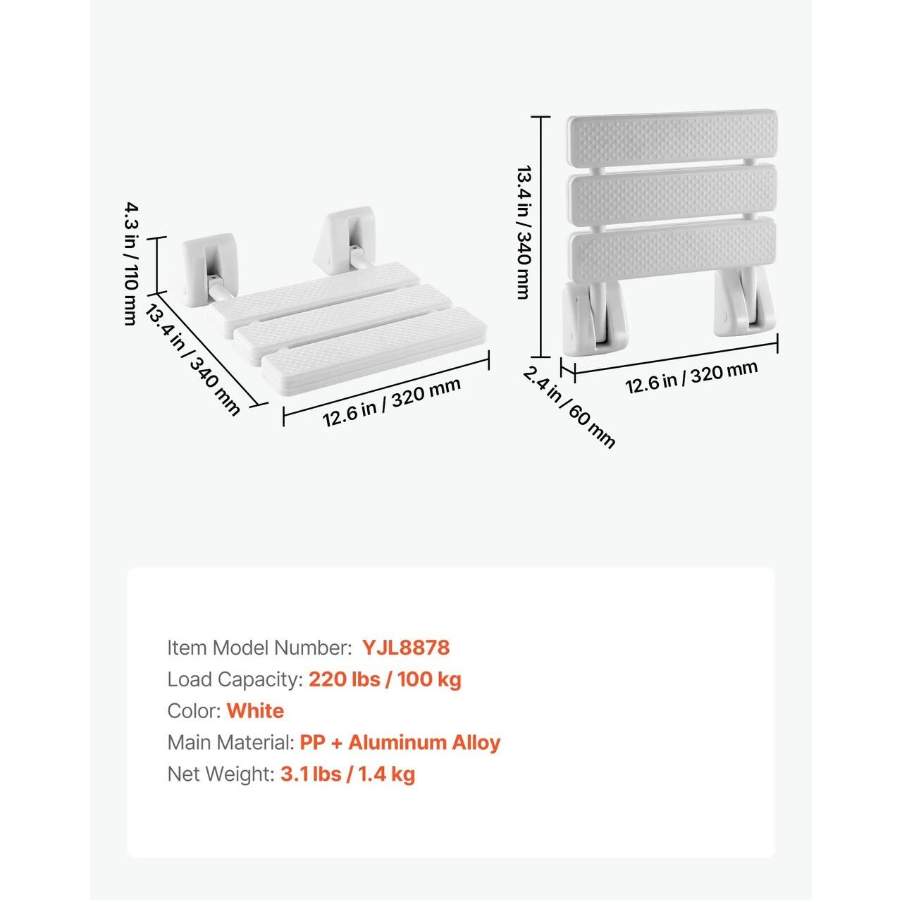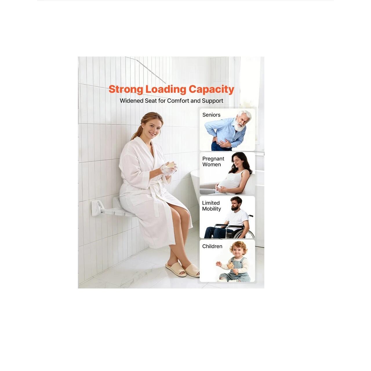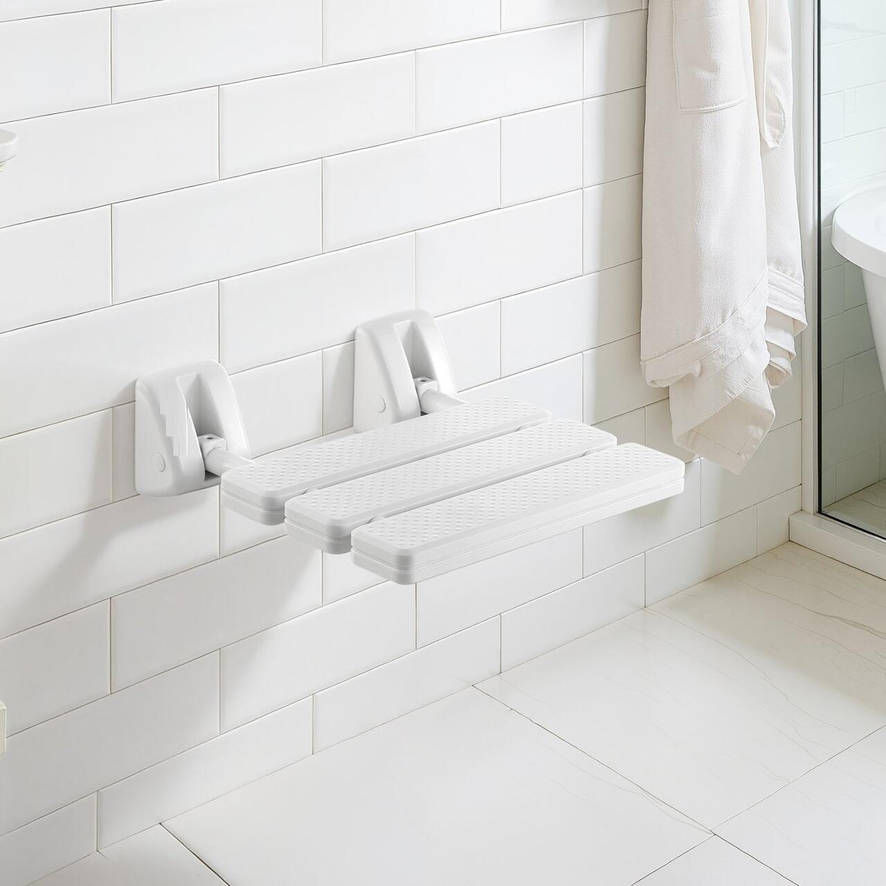 Design imbunatatit: Cu o suprafata impermeabila si usor de curatat, cusaturi cu drenaj rapid care ajuta la reducerea acumularii de apa si margini netede si fara bavuri, acest scaun de dus rabatabil, montat pe perete, sporeste confortul si siguranta pentru utilizarea zilnica.