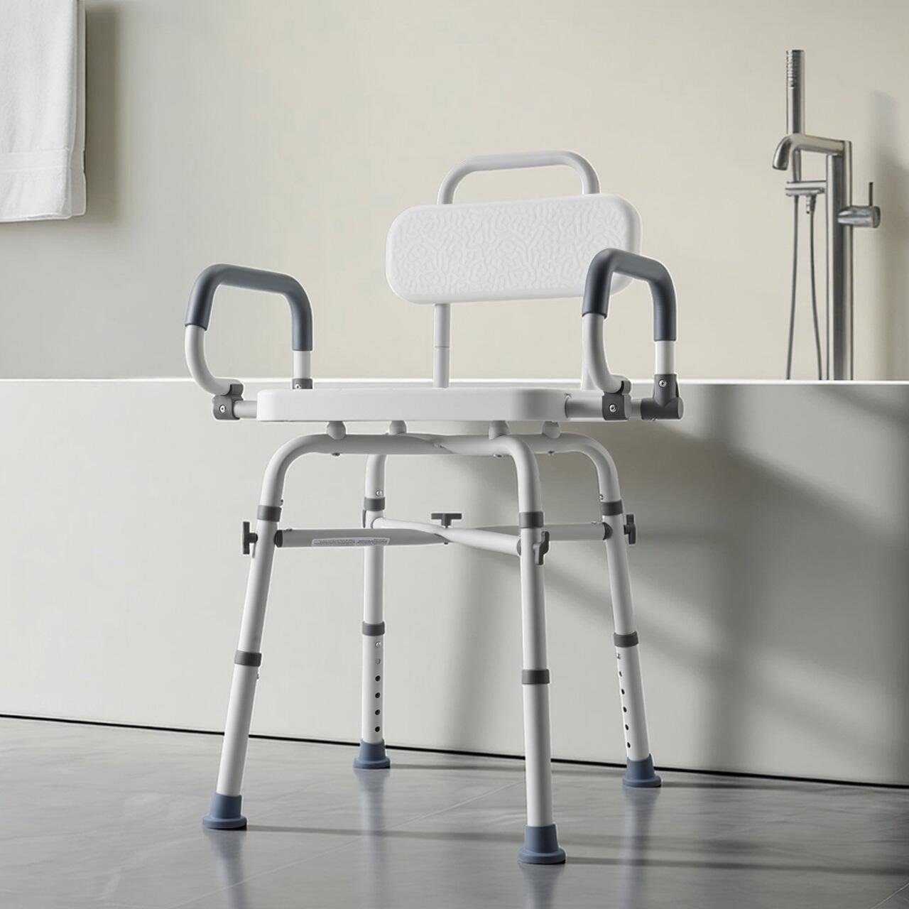 Scaun de dus rotativ cu brate si spatar pentru persoane cu dizabilitati, max 227 kg, Anti-derapant, aluminiu, Inaltime reglabila
