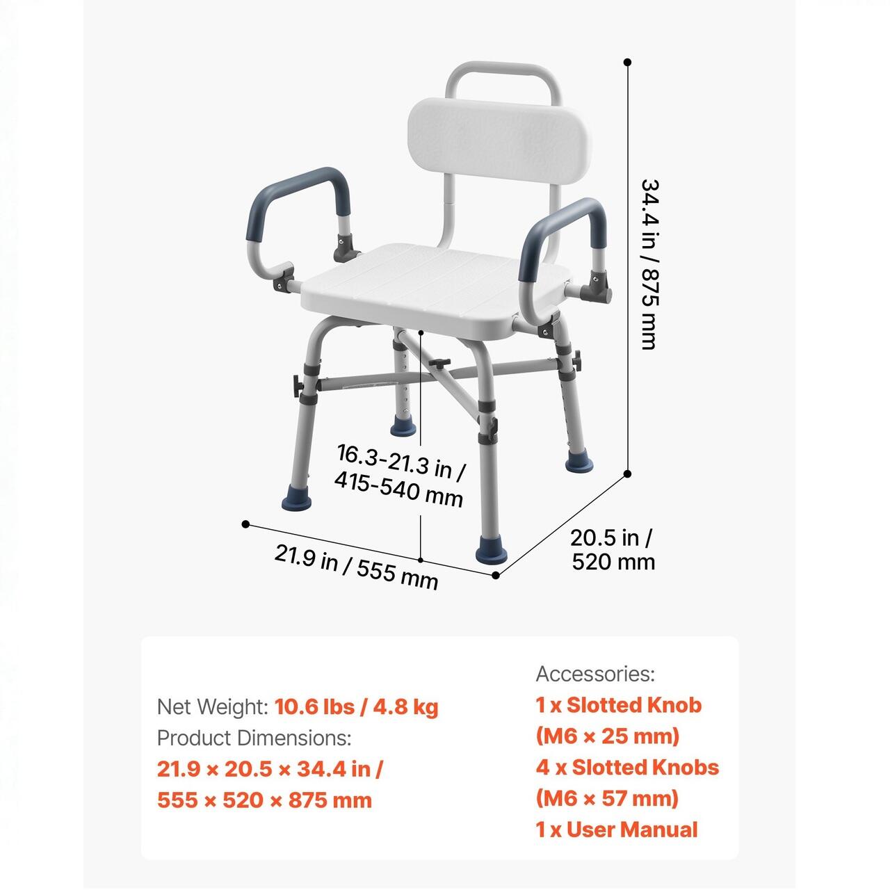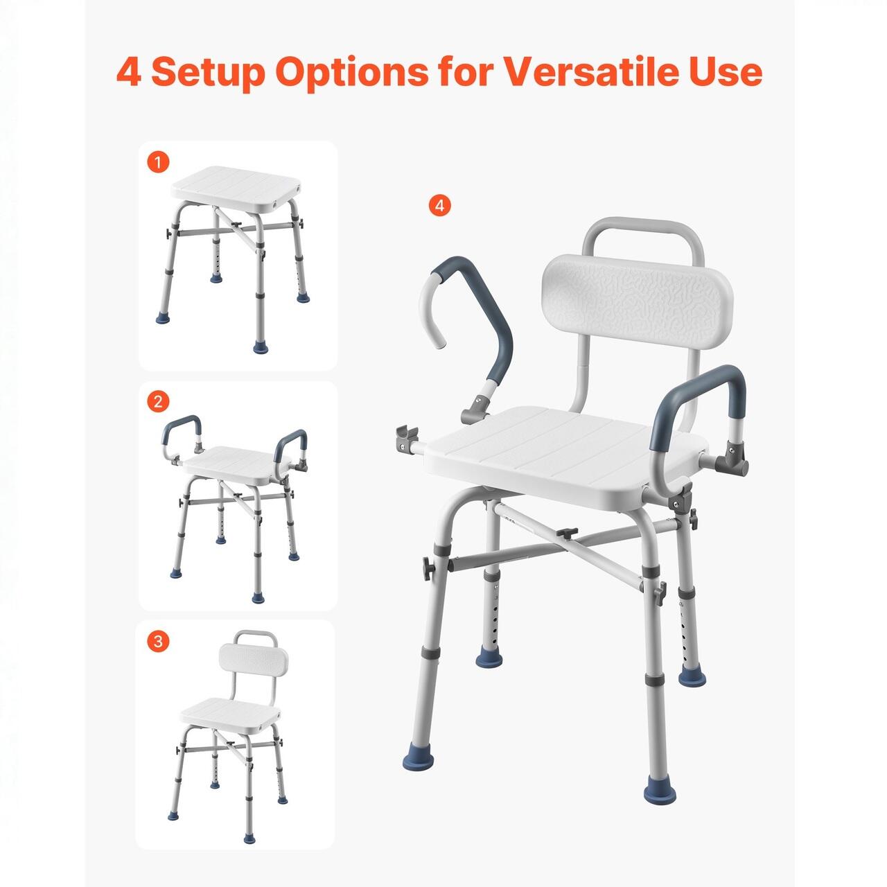 Instalare fara unelte: Aceasta banca de transfer cu cada foloseste un sistem de asamblare cu buton pentru o instalare rapida si fara unelte. Accepta patru optiuni de asamblare, inclusiv configuratii fara spatar sau fara cotiere, pentru a se potrivi diferitelor nevoi ale utilizatorilor.