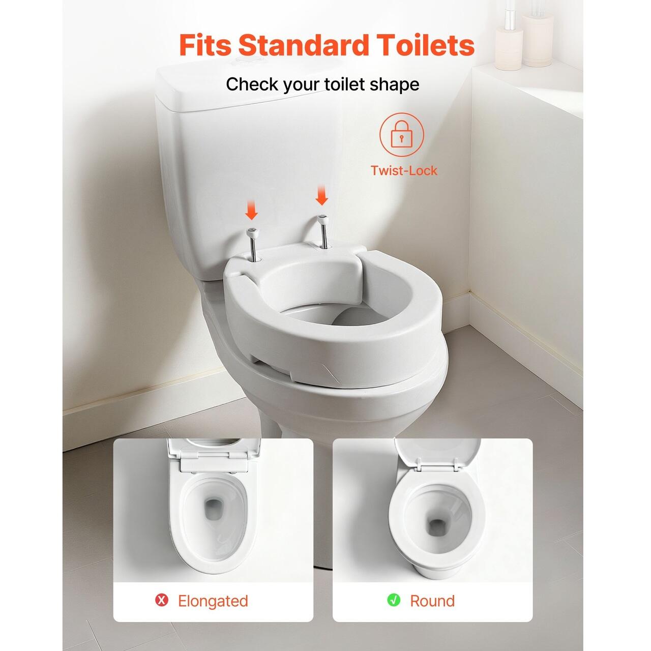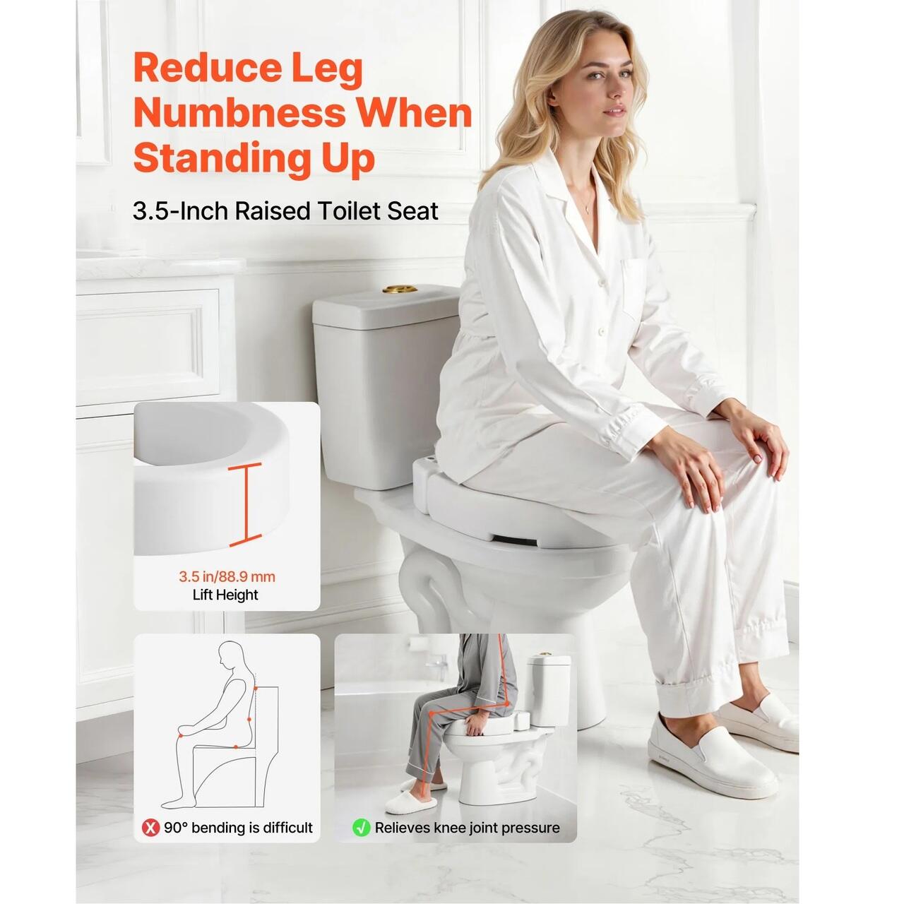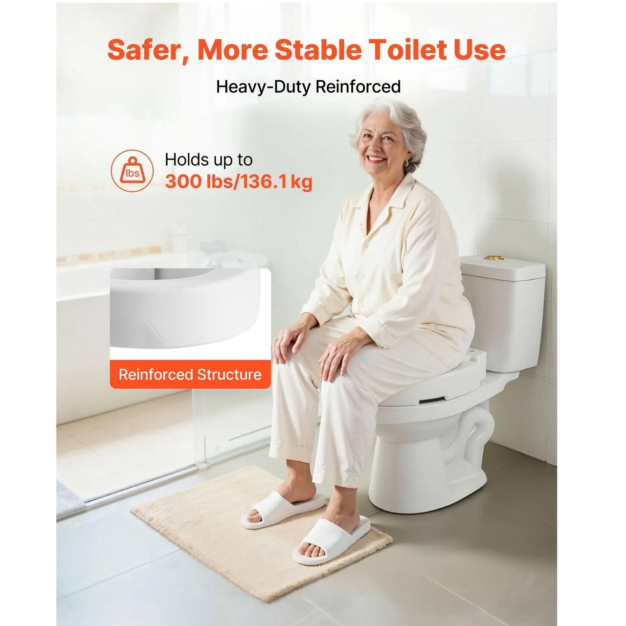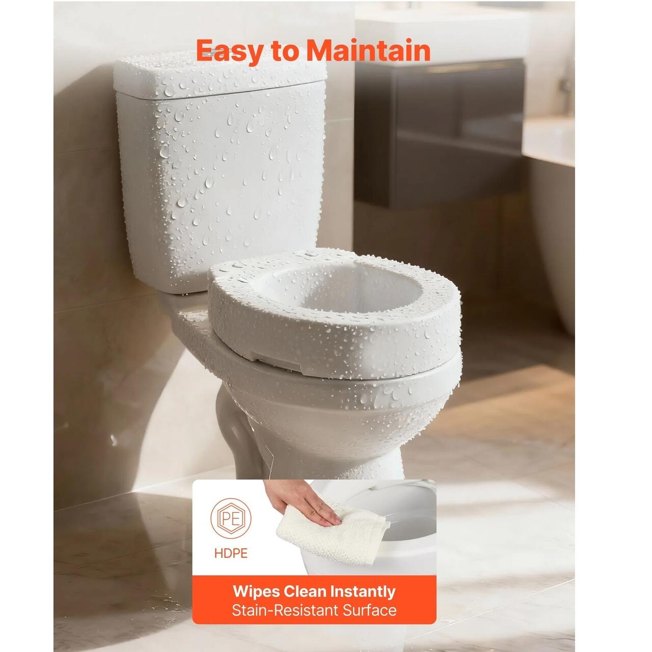 Ridica scaunul de toaleta cu 8,9 cm: Scaunul nostru de toaleta ridicat mareste inaltimea toaletei cu 88,9 mm pentru un confort sporit. Este ideal pentru femeile insarcinate, seniorii, pacientii si persoanele cu dizabilitati, reducand presiunea asupra soldurilor, genunchilor, picioarelor si tendoanelor lui Ahile.
