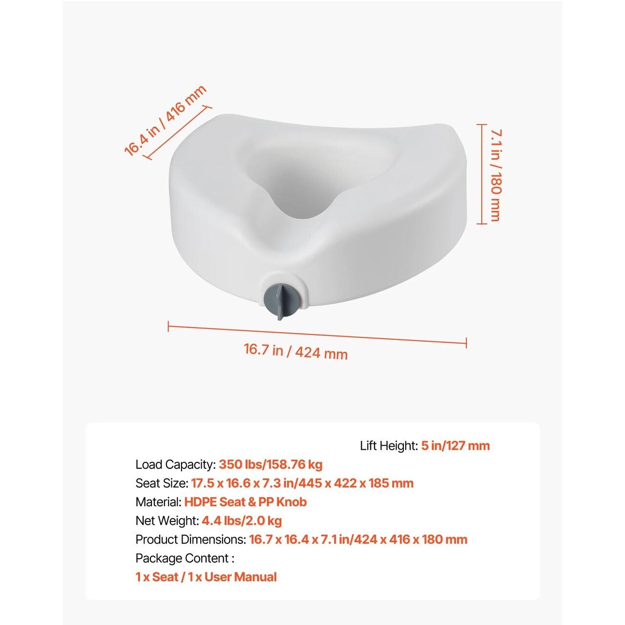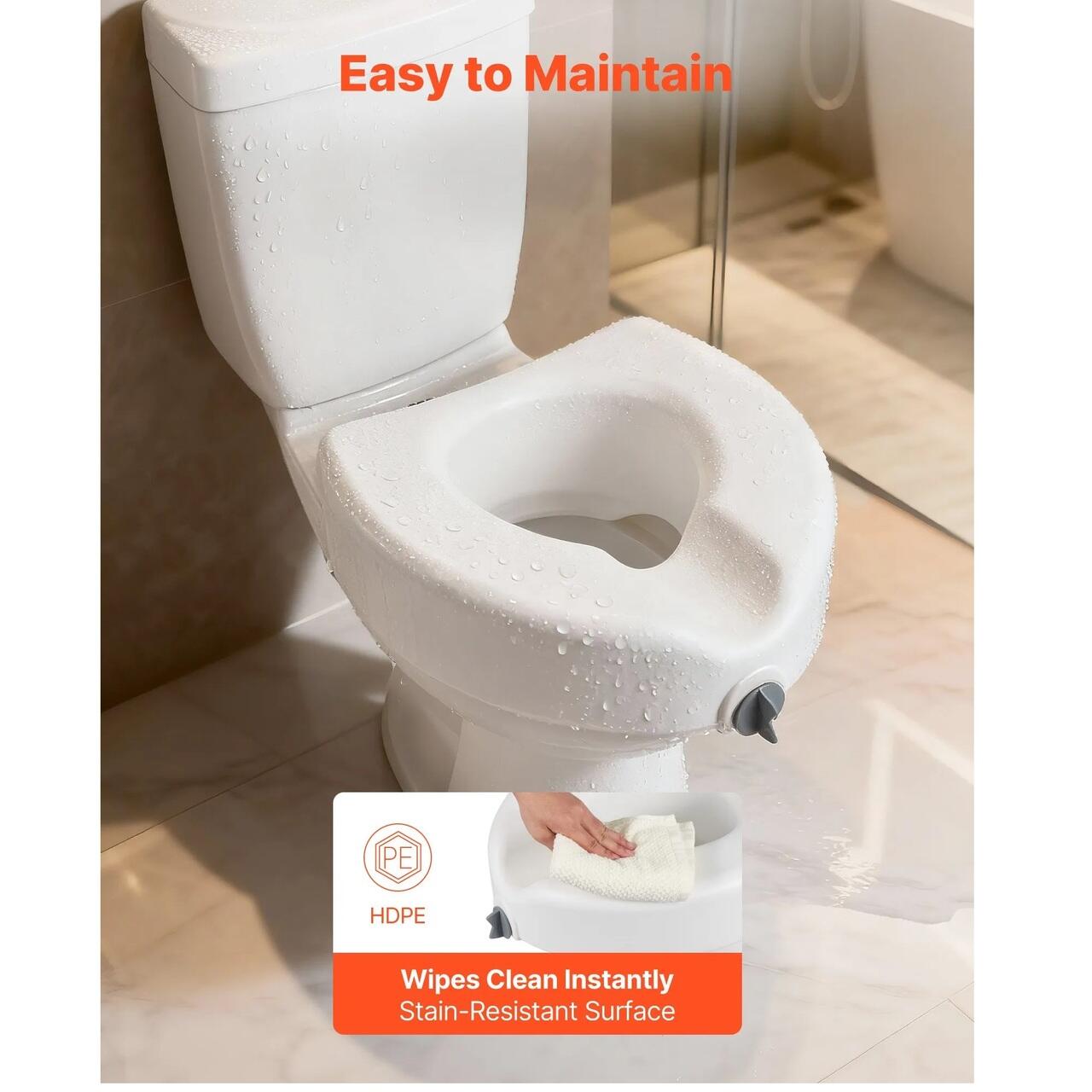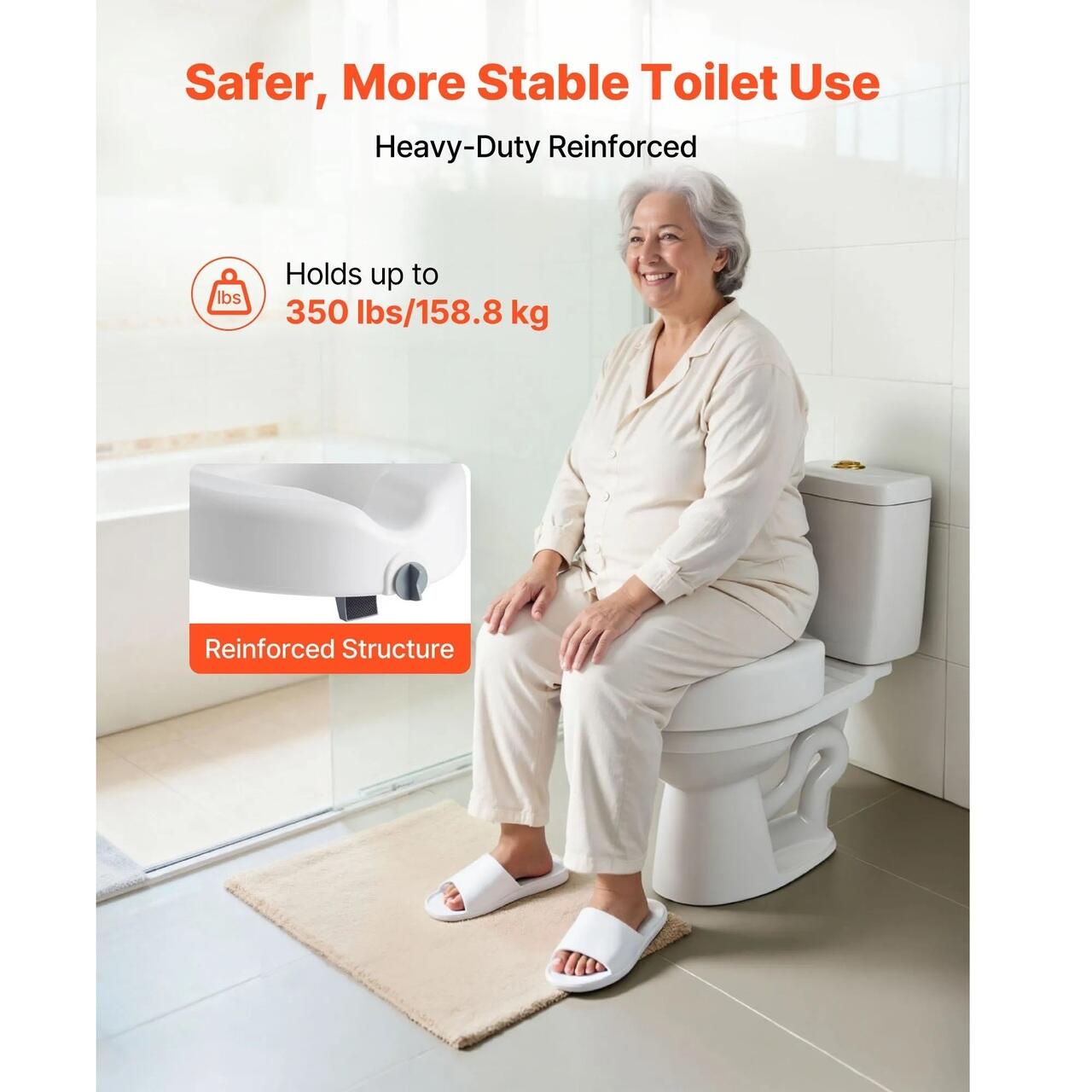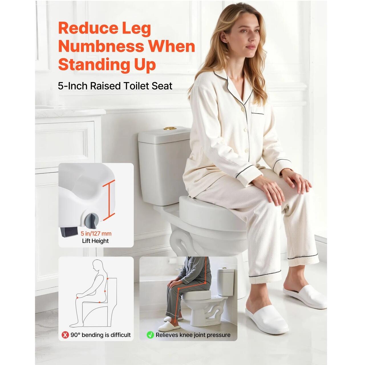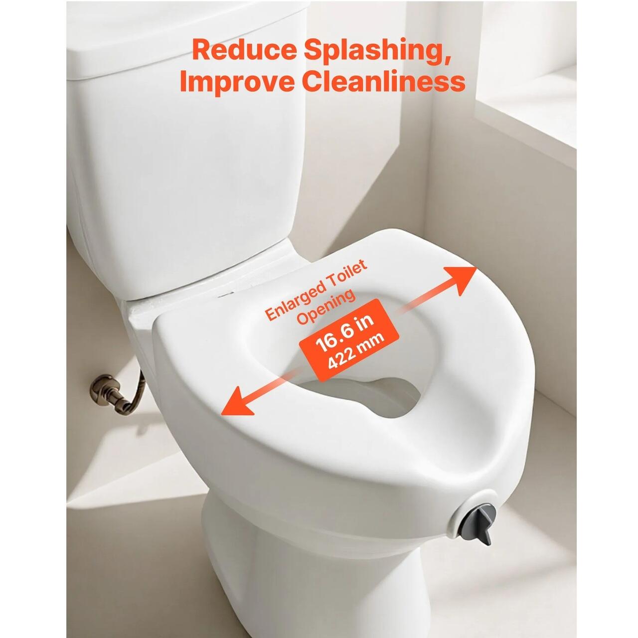 Ridica scaunul de toaleta cu 12,7 cm: Scaunul nostru de toaleta ridicat mareste inaltimea toaletei cu 12,7 cm pentru un confort sporit. Este ideal pentru femeile insarcinate, seniorii, pacientii si persoanele cu dizabilitati, reducand presiunea asupra soldurilor, genunchilor, picioarelor si tendoanelor lui Ahile.