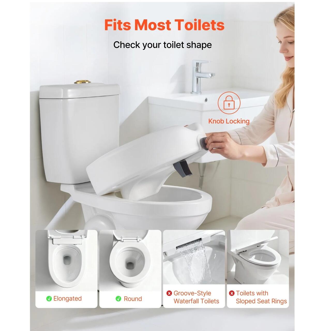 Instalare cu buton de blocare: Acest suport pentru scaunul de toaleta se instaleaza usor peste capacul toaletei, fara a fi nevoie de gauri sau unelte. Rotiti butonul central pentru a-l fixa sau detasa in cateva secunde. Compatibil cu majoritatea toaletelor rotunde si alungite standard, pentru o achizitie sigura.