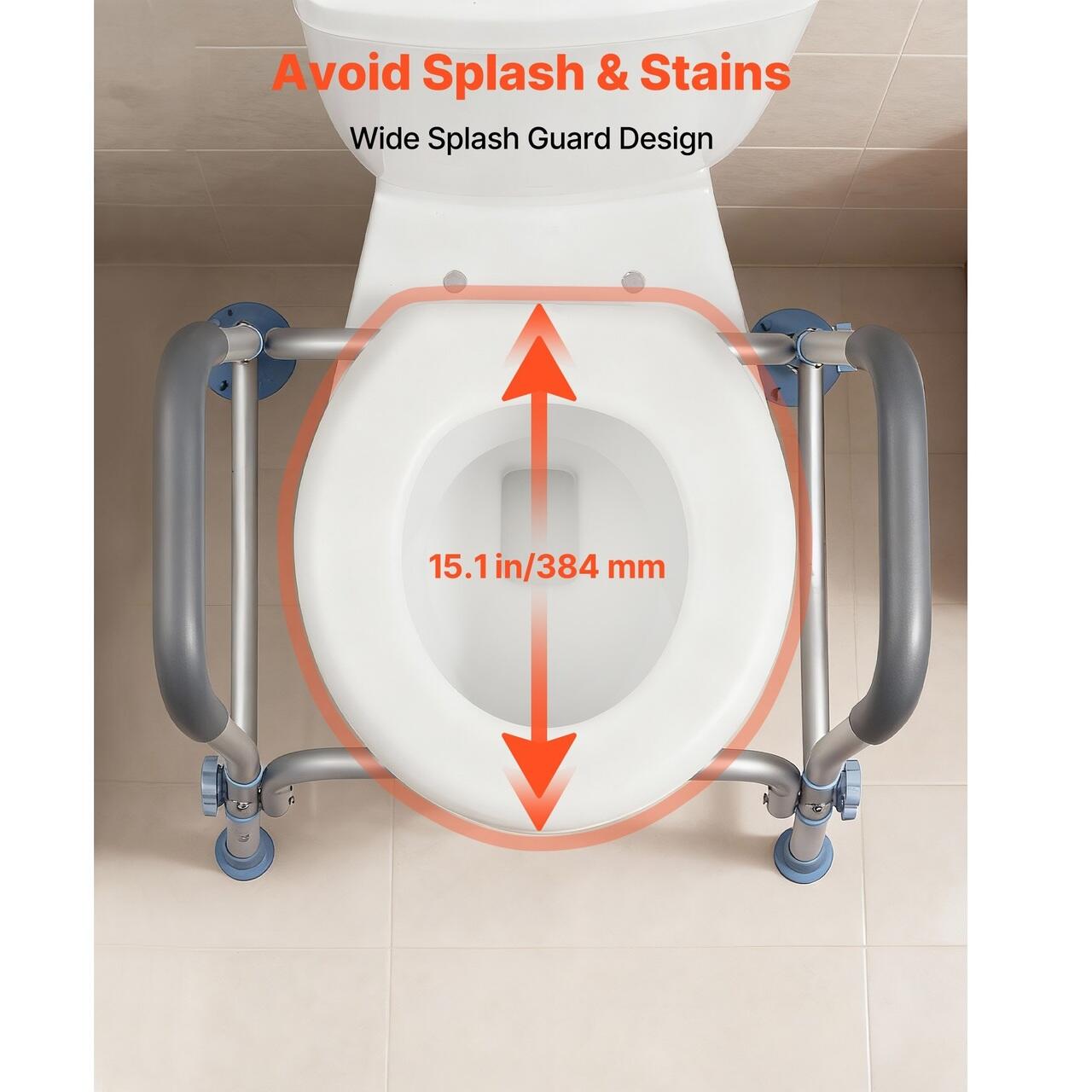 Cotiere spațioase: Cu o lățime de 535 mm, suportul pentru toaletă oferă spațiu amplu pentru o poziție confortabilă, atât pe scaun, cât și în picioare. Utilizatorii își pot ajusta pozițiile fără a se simți înghesuiți, reducând riscul de restricționare a mișcării sau de lovituri accidentale.