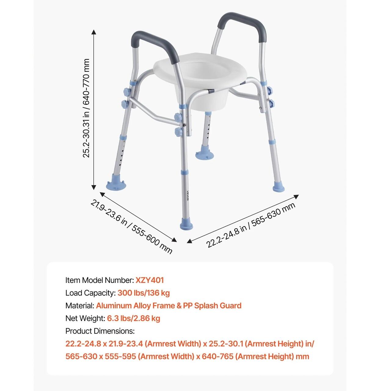 Robust și stabil: Scaunul nostru de toaletă pentru persoane cu dizabilități susține până la 136 kg pentru a se potrivi majorității utilizatorilor. Fabricat din aluminiu rezistent la coroziune, cu mânere căptușite pentru o prindere confortabilă, pernițele antiderapante pentru picioare asigură o utilizare sigură și stabilă de fiecare dată.