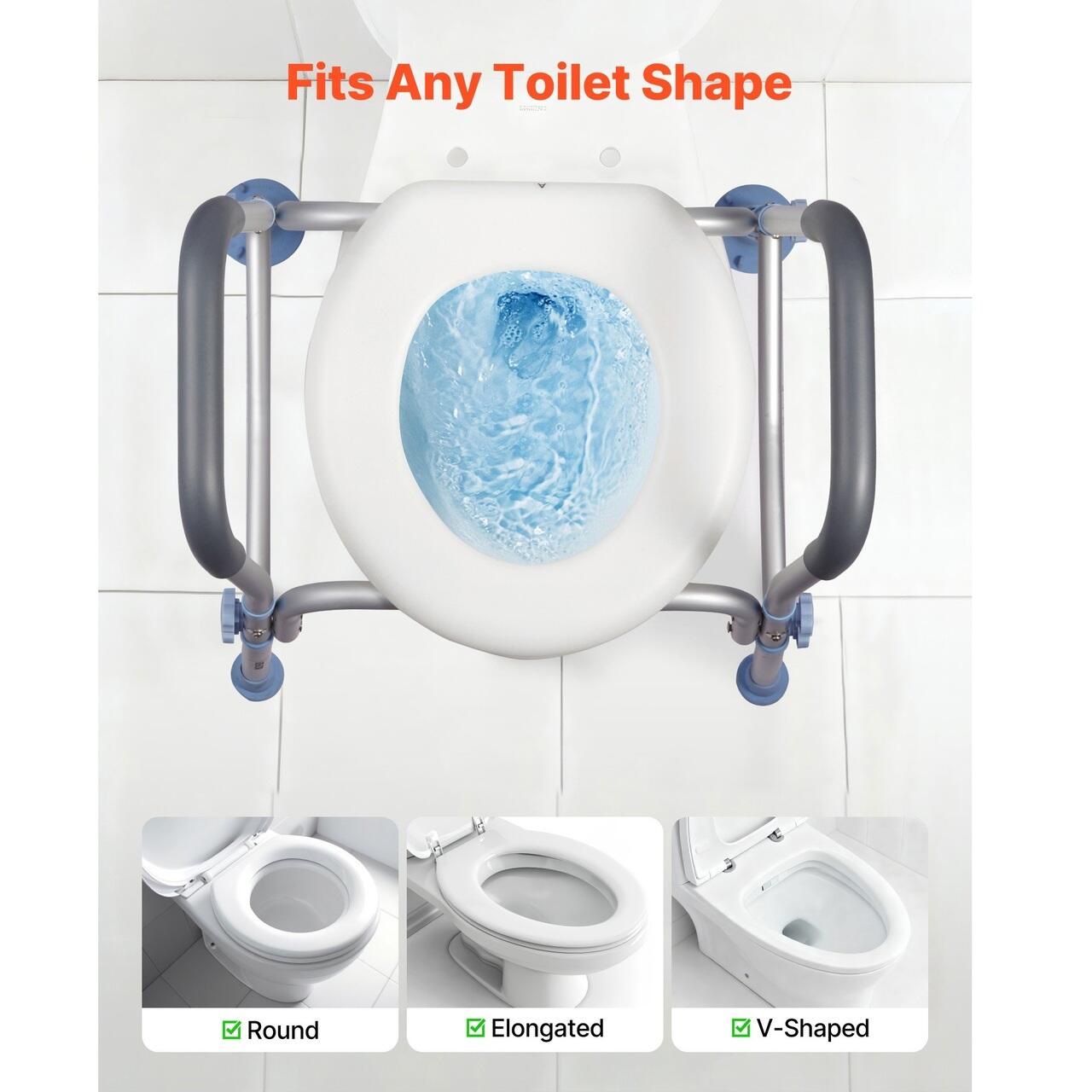 Capac de toaletă universal: Nu este necesară montarea pe toaletă - trebuie doar să asamblați cadrul pentru o instalare rapidă și fără unelte. Acest suport pentru scaun de toaletă este compatibil cu majoritatea toaletelor și chiar și începătorii îl pot asambla cu ușurință în câteva minute pentru o utilizare convenabilă și fără probleme.