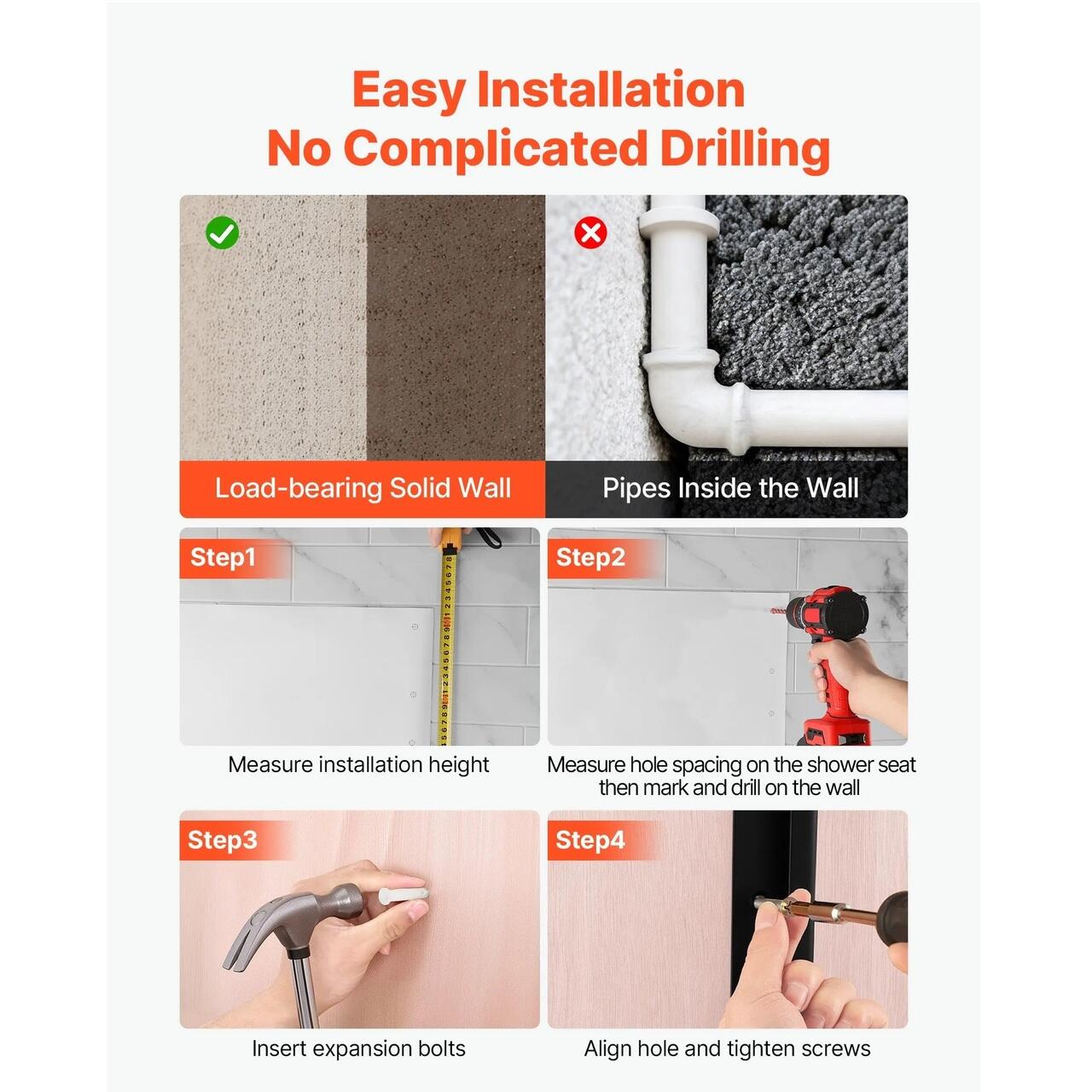 Pliabil si economiseste spatiu: Faceti-va experienta la dus mai confortabila si mai convenabila cu scaunul de dus montat pe perete. Se pliaza perfect pe perete atunci cand nu este utilizat, mentinand baia ordonata si maximizand spatiul disponibil.