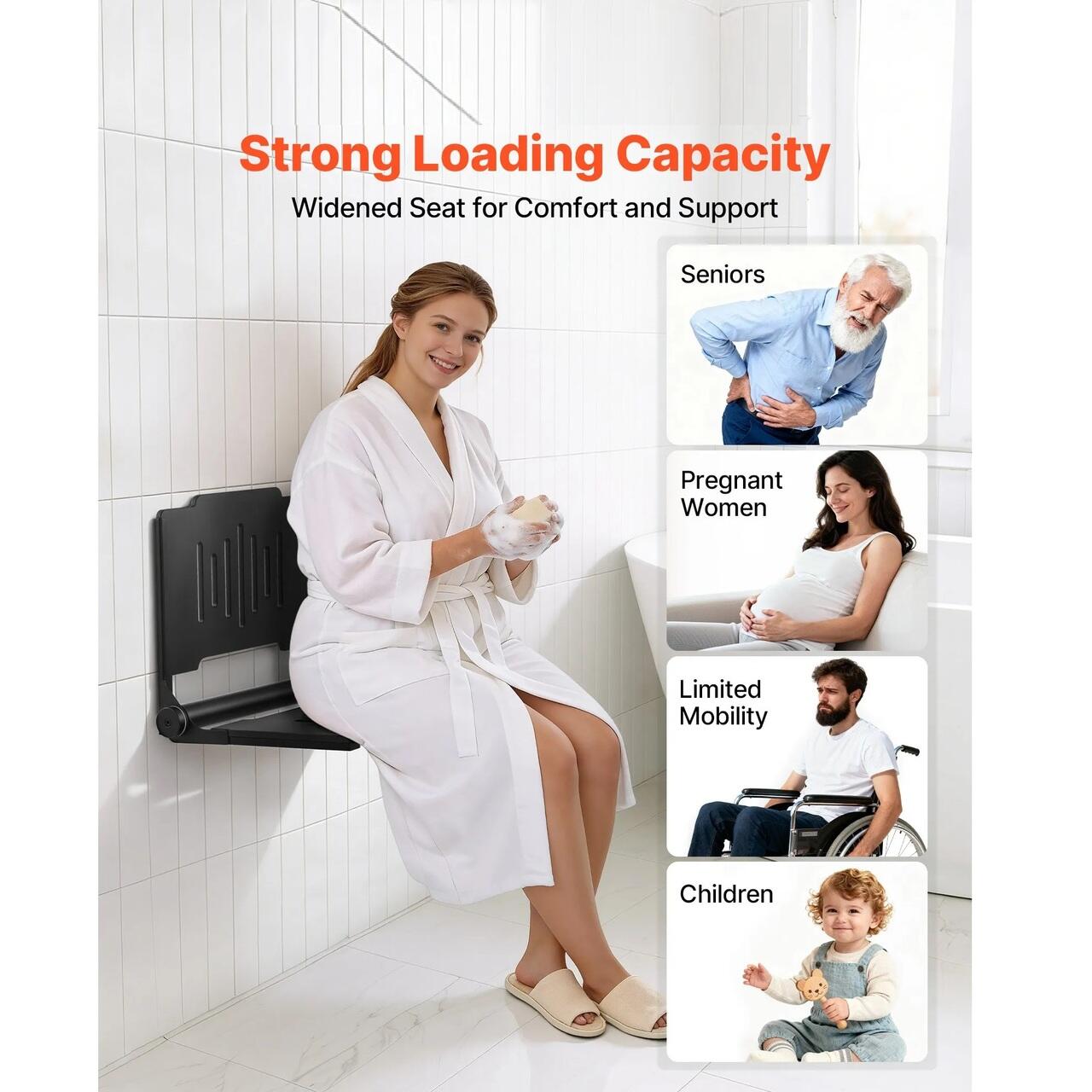 Scaun confortabil si sigur: Avand un spatar care ofera sustinere, o suprafata impermeabila si usor de curatat si margini netede si fara bavuri, acest scaun de dus rabatabil, montat pe perete, sporeste confortul si siguranta pentru utilizarea zilnica.
