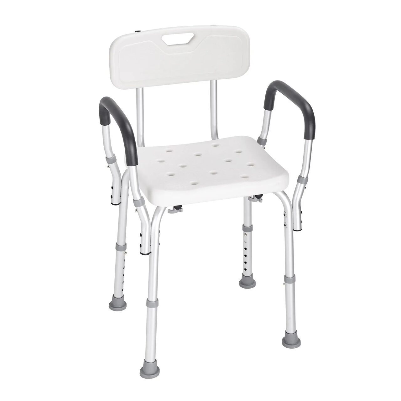 Design antiderapant: Prezinta 4 tampoane antiderapante pentru picioare, pentru o aderenta stabila pe suprafete texturate si netede. Scaunul de dus cu orificii mari de scurgere reduce acumularea de apa si alunecarea. Cotierele scaunului de dus sunt, de asemenea, captusite cu spuma antiderapanta, asigurand o experienta sigura de sedere si de stat in picioare, chiar si in bai sau cazi umede.