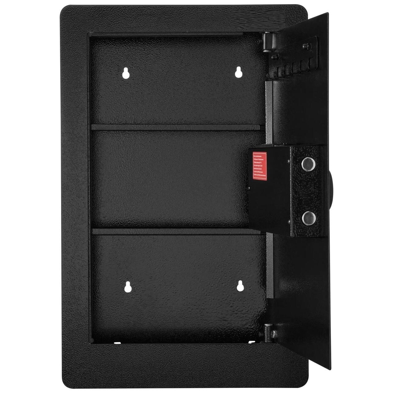 Protectie cuprinzatoare: Fabricat din otel aliat de inalta calitate, cu o usa din otel de 2,35 mm grosime si un panou integrat integral din metal, acest seif de perete este mai sigur decat usile traditionale semi-plastic, oferind protectie durabila si fiabila proprietatii dumneavoastra. Echipat cu doua suruburi solide de usa, ofera o protectie de top impotriva oricarei tentative de spargere.