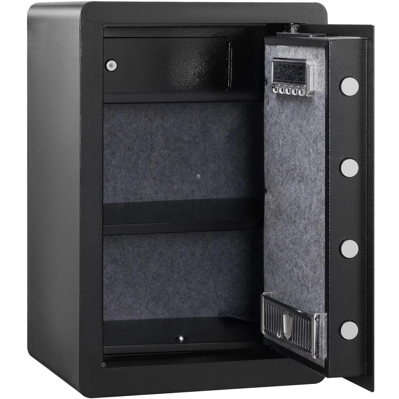 Securitate sporita: Pastrati-va obiectele de valoare in siguranta cu seiful nostru cu incuietoare! Acest seif ofera trei modalitati de acces: folosind o cheie, introducand un cod de parola de 3-12 cifre sau introducand amprenta. In plus, daca pierdeti cheile sau bateria se descarca, nu va faceti griji! Puteti accesa in continuare seiful cu ajutorul cutiei externe pentru baterii.