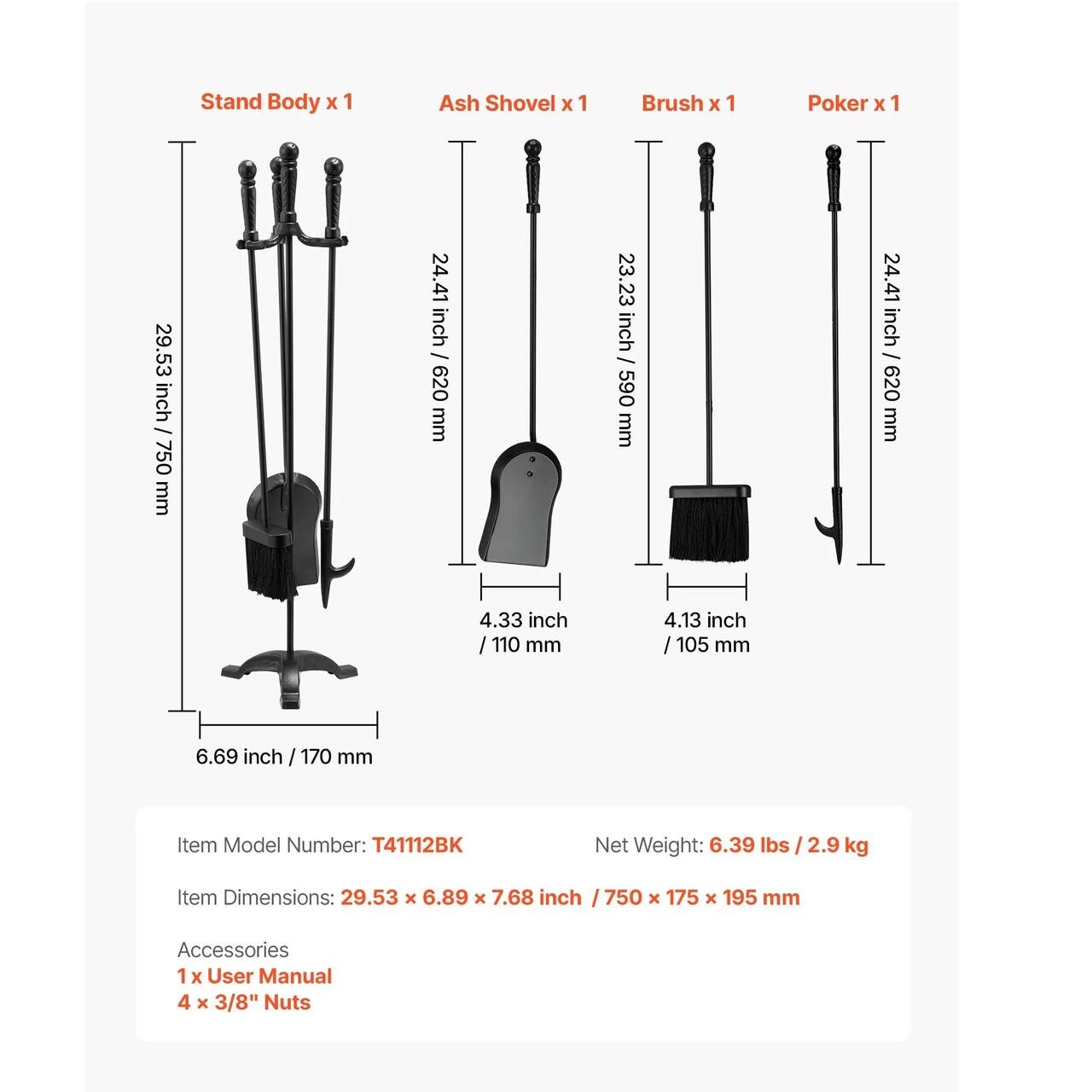 Set de scule pentru semineu 4 in 1: Acest set de scule pentru semineu include un vatrai, o lopata pentru cenusa, o perie si un suport pentru scule. Se ocupa cu usurinta de reglarea focului si de curatarea cenusii. Toate piesele functioneaza impreuna, facand utilizarea semineului mai eficienta si mai convenabila.