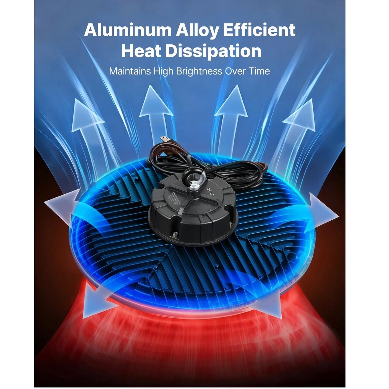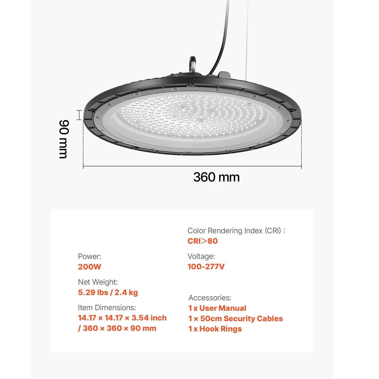Performanta eficienta energetic: Echipate cu LED-uri de inalta eficienta de 200 W, aceste lumini LED UFO ofera o iluminare puternica, economisind in acelasi timp energie, consumand mai putina energie decat luminile traditionale. Lumina alba naturala de 5000 K reduce oboseala ochilor in timpul lucrului prelungit.