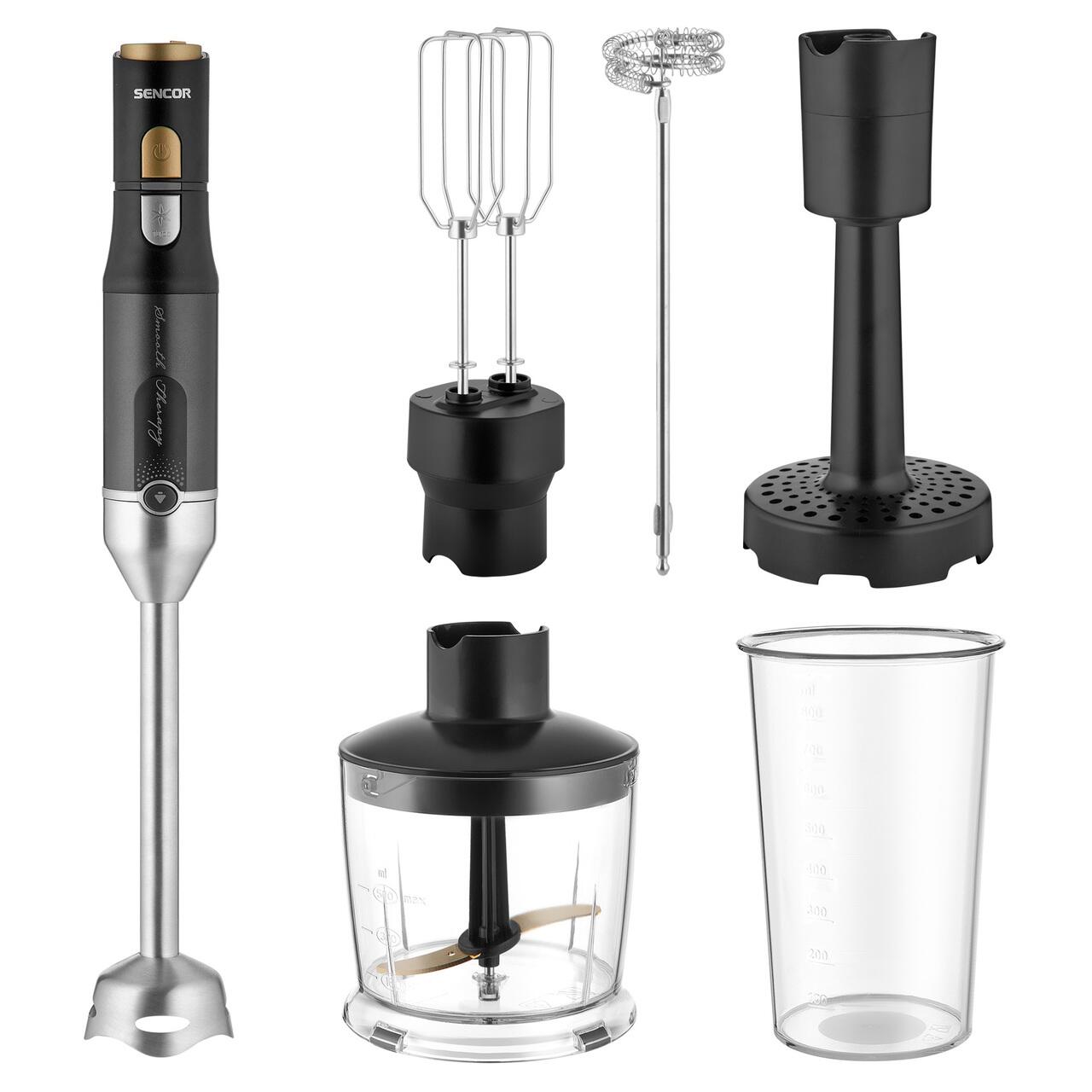 Set blender de mana, 1200 W, Aparat de spumare a laptelui, Inox, capacitate 800 ml, Negru