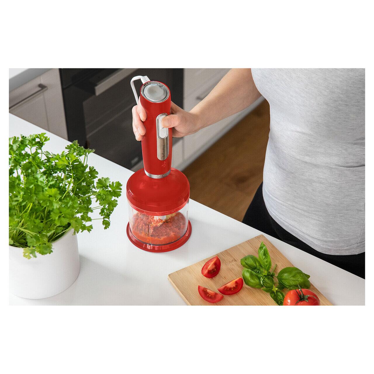 Performanta maxima a motorului in timp ce functioneaza si este, de asemenea, foarte silentios. Controleaza prepararea alimentelor, accelerand in acelasi timp procesul general de gatire. Poate fi folosit in trei moduri diferite: mixare, batere si tocare.