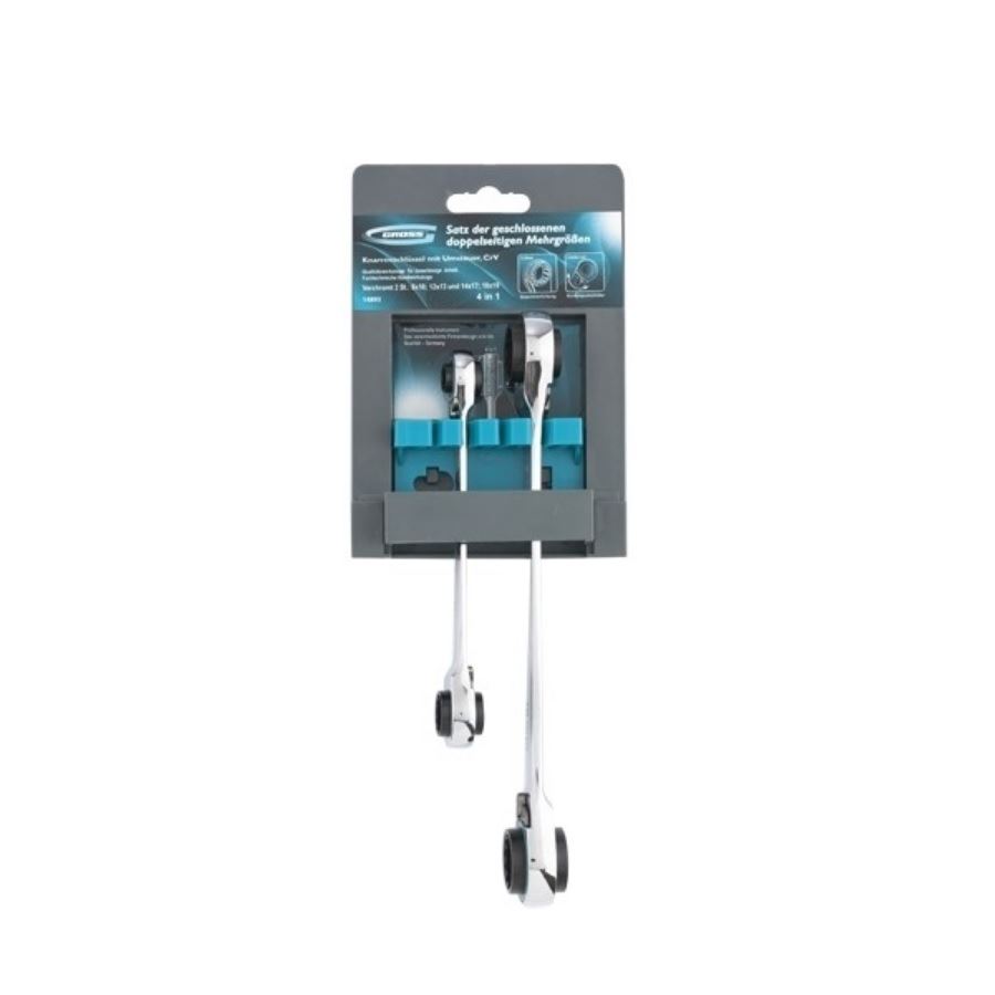 Format din doua chei fixe ​​cu inel reversibile pentru elemente de fixare cu dimensiuni de la 8 la 19 milimetri.