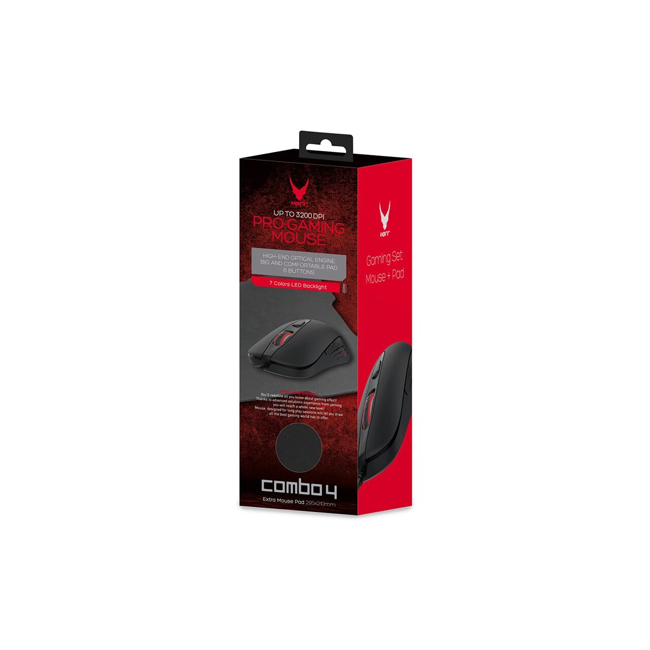 Set Mouse gaming cu fir si Mousepad, lumina led, 6 butoane, Rezoluție 3200 dpi, USB 2.0