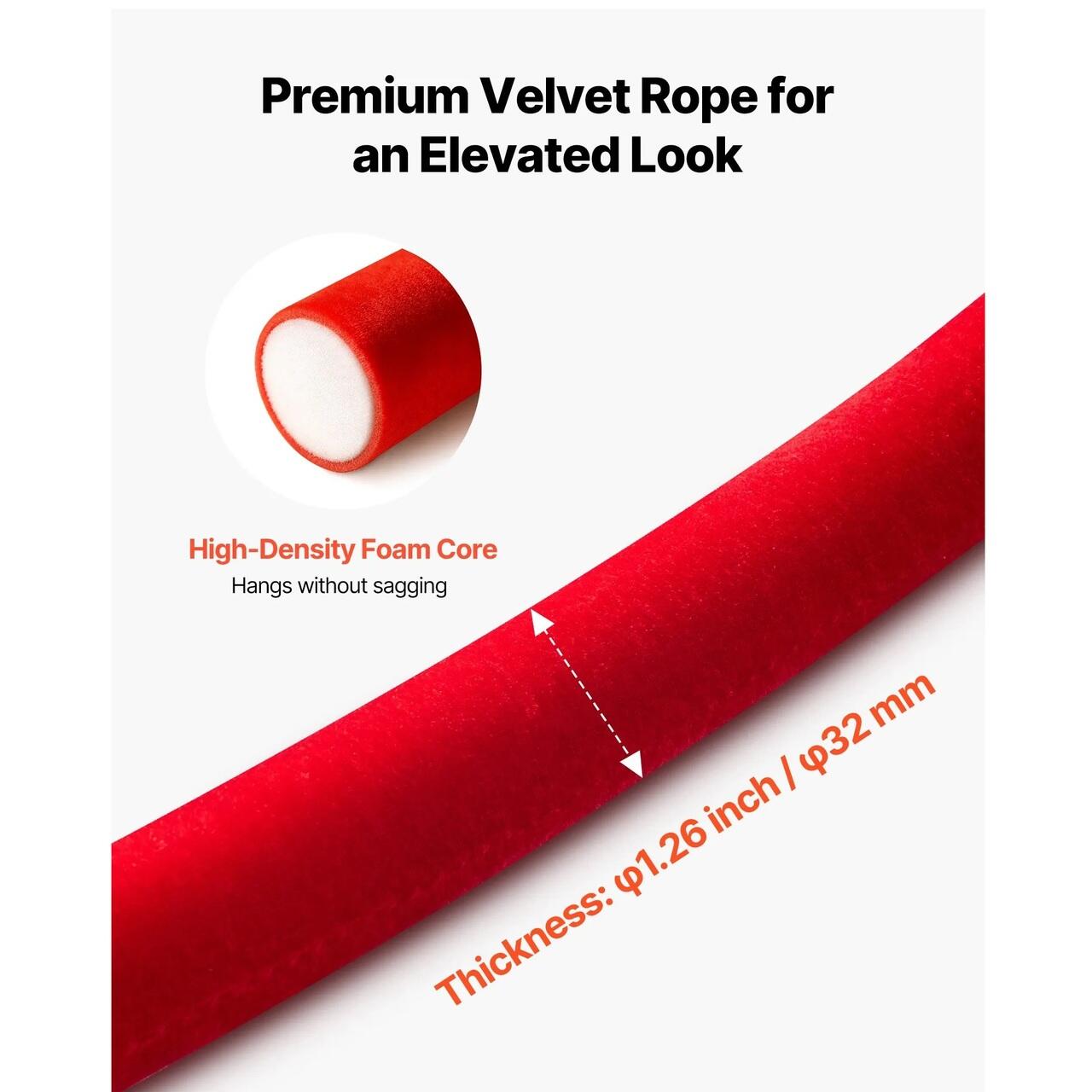 Miez gros si rezistent: Aceasta bariera din franghie de catifea este construita cu un miez dens de spuma care ii ofera forma si rezistenta, permitandu-i sa atarne usor fara a se prabusi sau aplatiza.