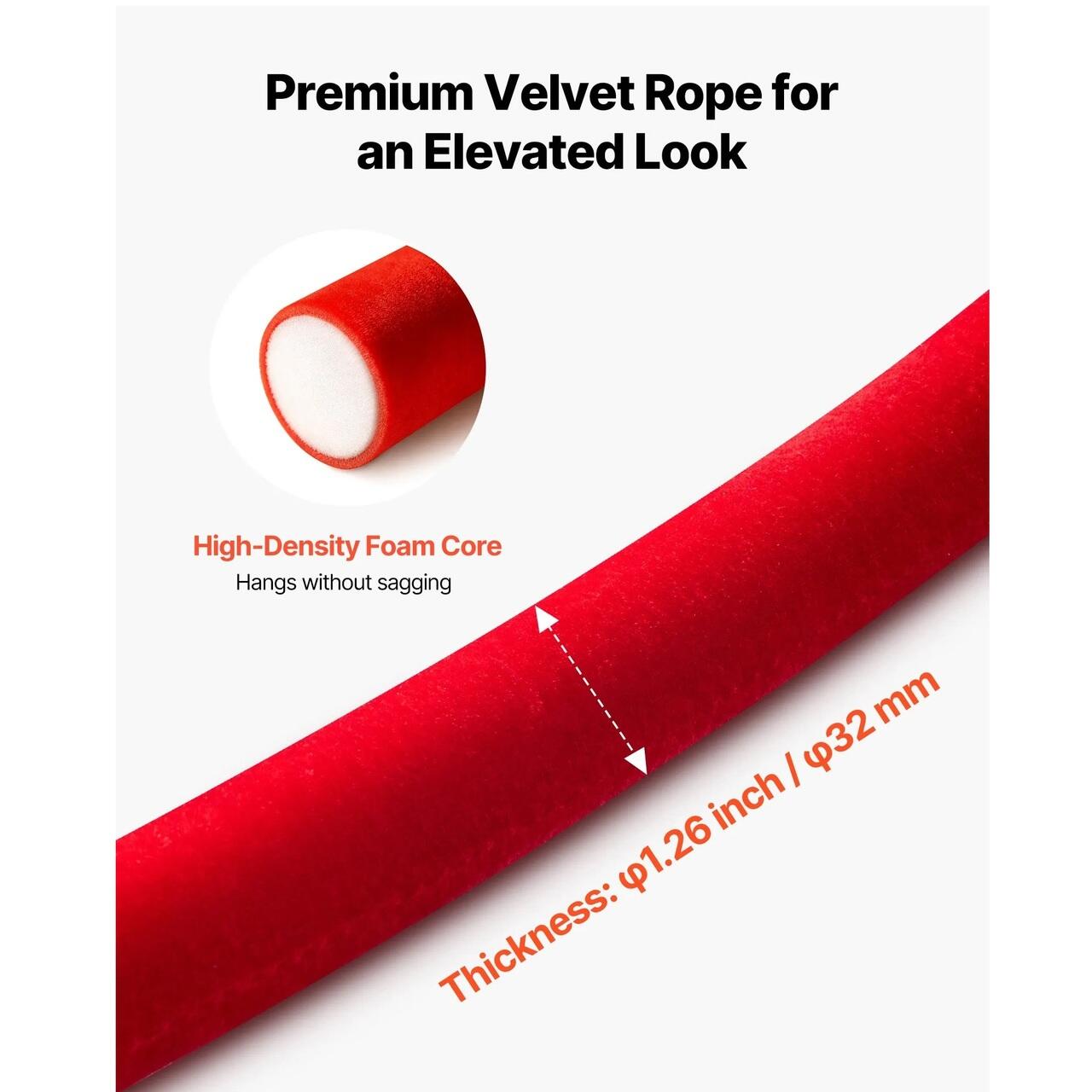 Miez gros si rezistent: Aceasta bariera din franghie de catifea este construita cu un miez dens de spuma care ii ofera forma si rezistenta, permitandu-i sa atarne usor fara a se prabusi sau aplatiza.