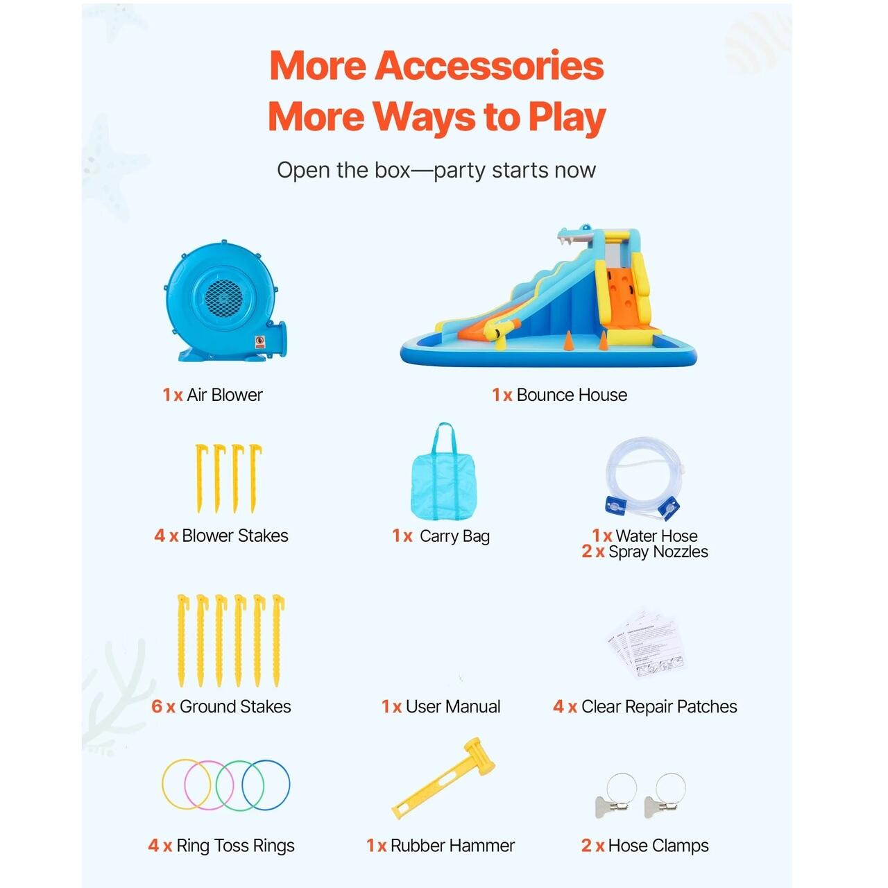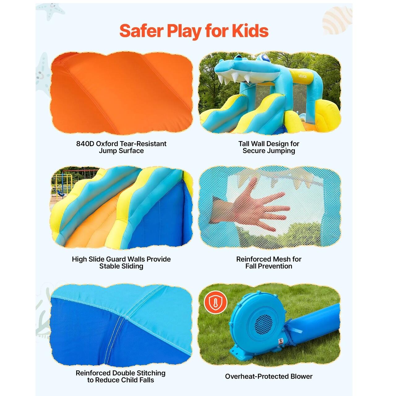 Design atent conceput: Designul exterior colorat este creat pentru a se potrivi mai bine preferintelor si experientelor de joaca ale copiilor. Aceasta casa gonflabila cu tobogan cu apa include petice adezive de reparare fara sudura pentru remedieri rapide, fara impact vizual. Construita pentru utilizare repetata, ofera valoare de joaca pe termen lung pentru familii.