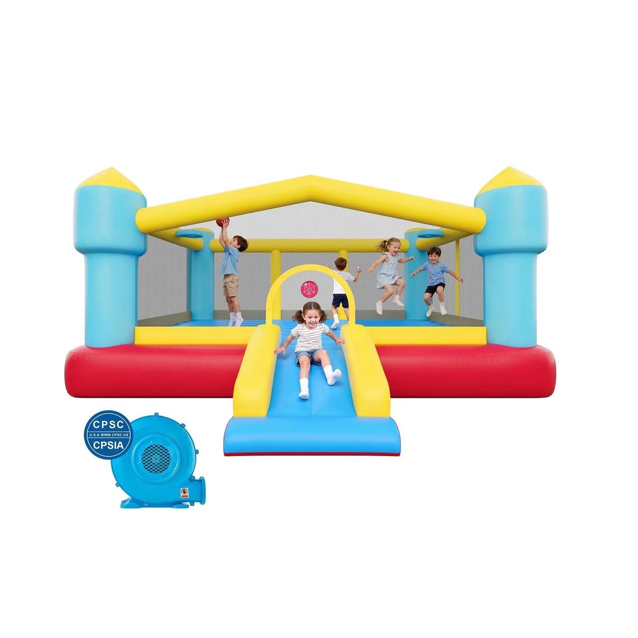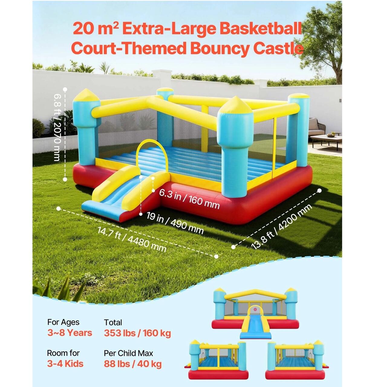 Spatiu joaca multifunctional, Topogan, Zona sarituri, cos baschet, max 160 kg, Gonflabil, 4480 x 4200 x 2070 mm