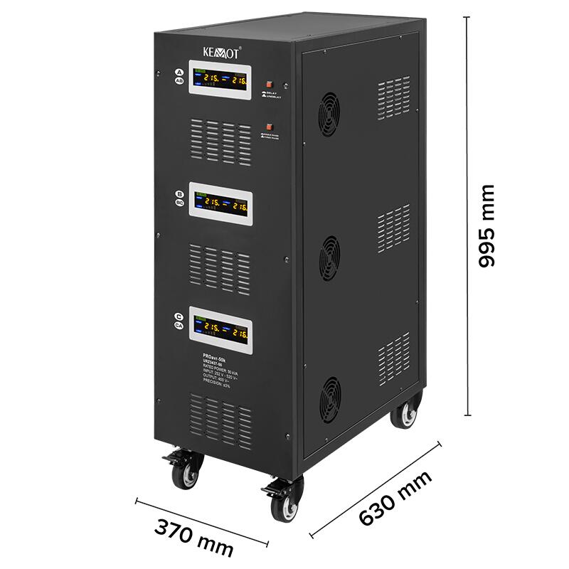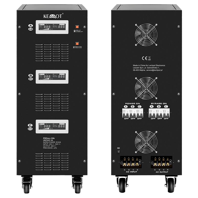Stabilizator de tensiune automat 50 kVA, Tensiune intrare 252 – 520 V AC, Trifazat, Control stabilizare servomotor