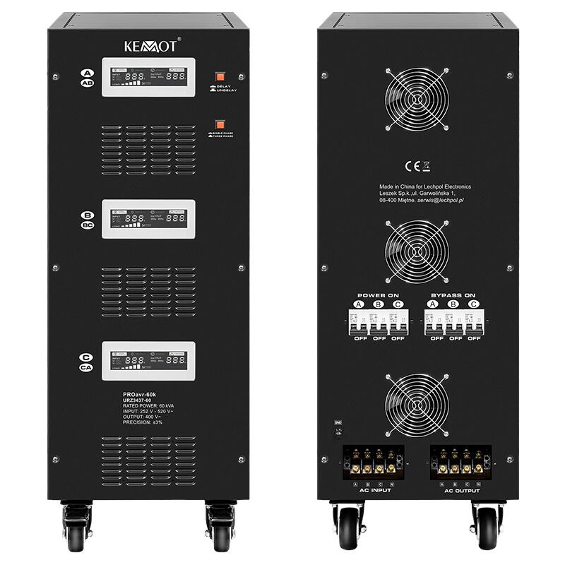 Stabilizator de tensiune automat 60 kVA, Tensiune intrare 252 – 520 V AC, Trifazat, Control stabilizare servomotor