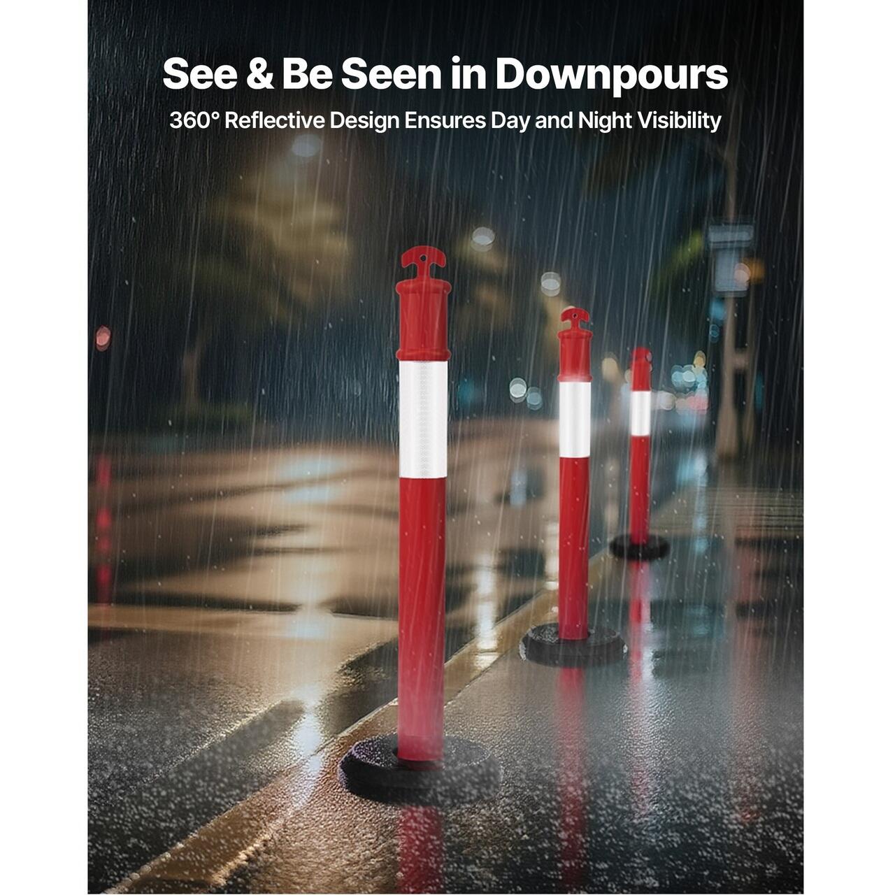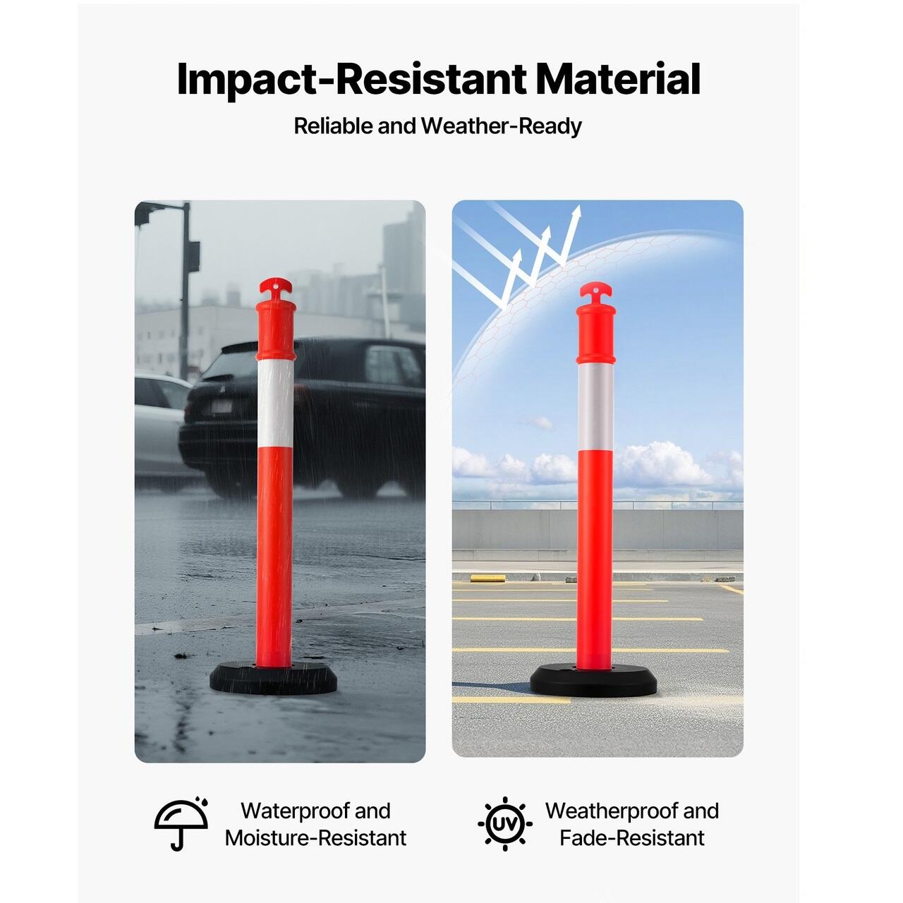Vizibilitate ridicata: Dotate cu benzi reflectorizante de inalta intensitate la 360°, stalpii de delimitare a traficului asigura o vizibilitate ridicata chiar si in conditii de lumina slaba, ceata sau stralucire puternica. Permite pietonilor, vehiculelor si muncitorilor din constructii sa identifice prompt stalpii, sporind securitatea in timpul lucrarilor sau al devierii traficului.