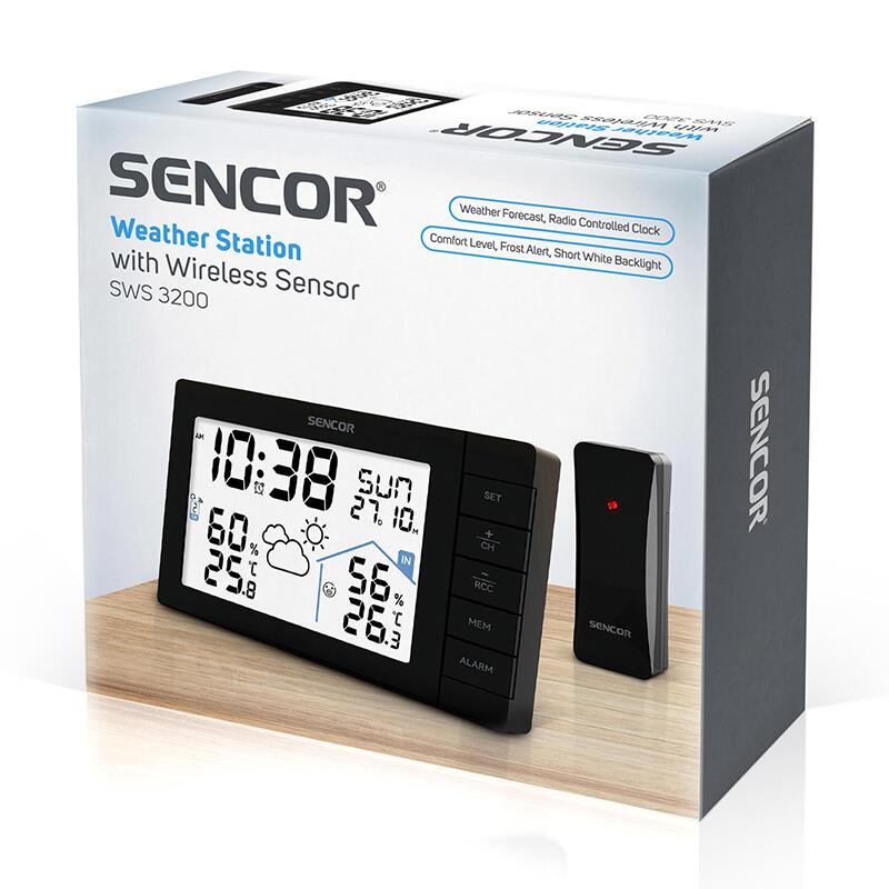 Statia meteo SENCOR SWS 3200 monitorizeaza atat temperaturile interioare, cat si cele exterioare in grade Celsius si Fahrenheit, precum si nivelurile de umiditate in procente. Emite avertizari de inghet - o functie utila pentru soferi si pentru cei cu mobilitate limitata - si prognozeaza vremea prin pictograme grafice (ploaie, soare, partial innorat si multe altele). Valorile maxime si minime inregistrate pentru ultimele 24 de ore sunt stocate automat, permitandu-va sa le revizuiti. Afisajul afiseaza ora curenta, sincronizata prin semnal radio. Statia include un senzor. Pot fi achizitionati senzori suplimentari si pot fi conectati pana la 3 in acelasi timp. Statia poate comuta automat intre datele senzorului.
