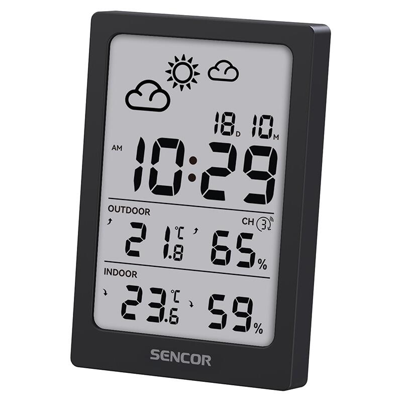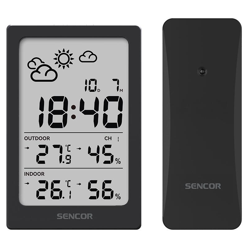 Statia meteo SENCOR SWS 2300 monitorizeaza atat temperaturile interioare, cat si cele exterioare in grade Celsius si Fahrenheit, precum si nivelurile de umiditate in procente. Poate prognoza vremea si o poate afisa prin pictograme grafice (insorit, partial innorat, innorat, ploios, ninsoare). Valorile maxime si minime inregistrate pentru ultimele 24 de ore sunt stocate automat, permitandu-va sa le revizuiti. Afisajul arata si ora curenta. Puteti seta o alarma dubla pentru treziri regulate.