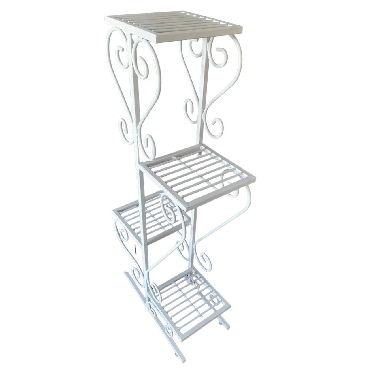 Suport pentru ghivece flori, Alb, dimensiune 50x22x105 cm, picioare reglabile