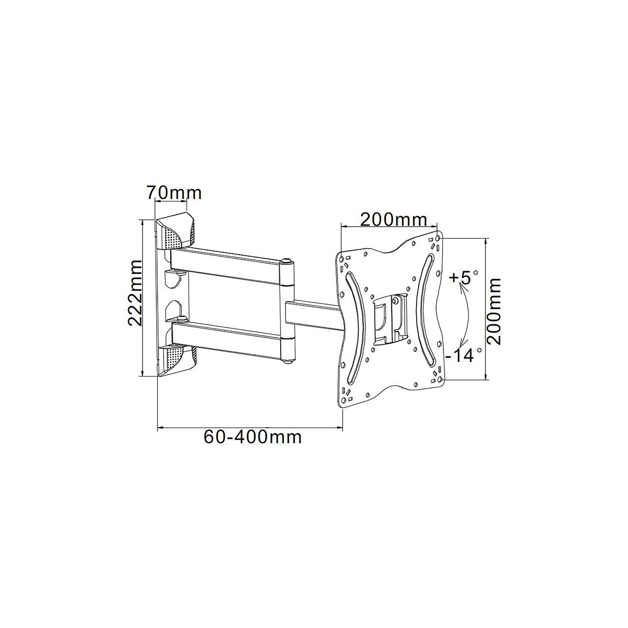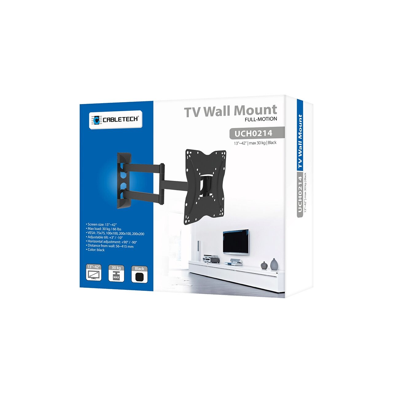 Suport TV pentru TV cu diagonala ecranului intre 13" - 42" Încărcare maximă: 30 kg / 66 lb Standard VESA: 75x75, 100x100, 200x100, 200x200 Reglarea înclinării: -10 ° / + 3 ° Reglarea pe orizontală: + 90 ° / -90 ° Distanta fata de perete: 56 ~ 415 mm Culoare: negru