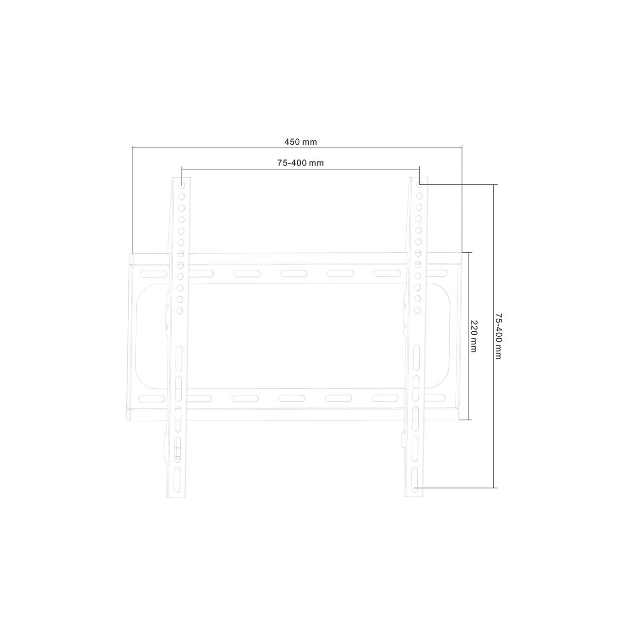 Suport universal pentru LED TV cu diagonala cuprinsa intre 26 - 55 inch. Greutate maxima suportata: 40 kg Distanta fata de perete: 25 mm Dimensiune maxima standard VESA: 400x400