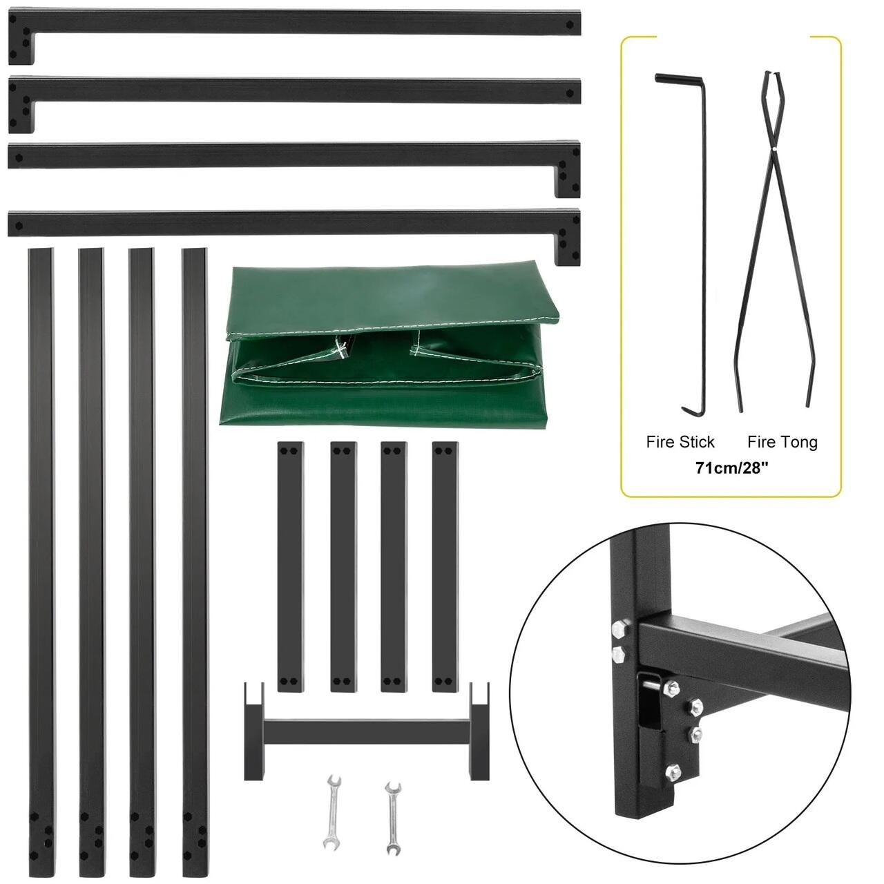 SET COMPLET SI ASAMBLARE RAPID- Pe langa piesele cadrului, acest kit pentru sopron de lemne va ofera si o husa impermeabila pentru a va proteja suportul si a reduce daunele provocate de intemperii gramezilor de lemne. De asemenea, include 2 chei pentru asamblare rapida, 1 cleste de foc si 1 cleste de foc. Ambele au o lungime de 71 mm / 2,8".