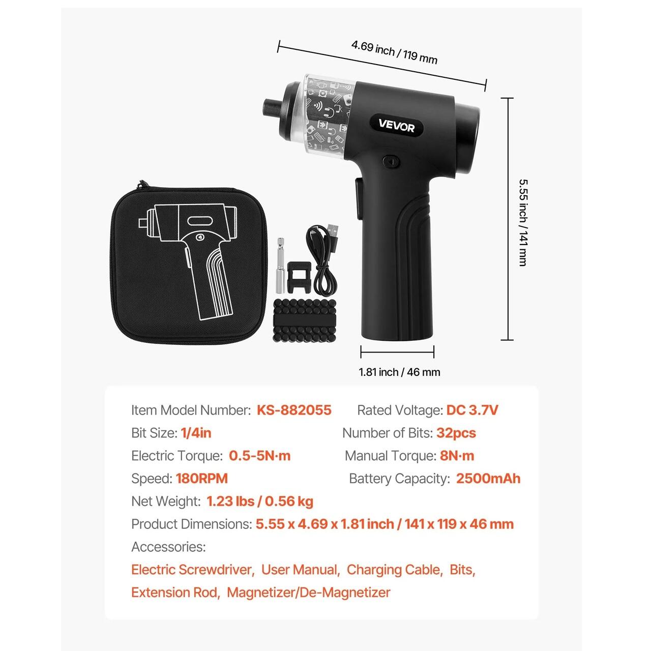 32 de biti magnetici: Surubelnita electrica include 32 de biti de precizie pentru diverse sarcini de reparare. Este ideala pentru mobila, aparate de aer conditionat, robinete, prize, asamblarea computerelor si, de asemenea, un cadou atent pentru soti, prieteni sau tati.
