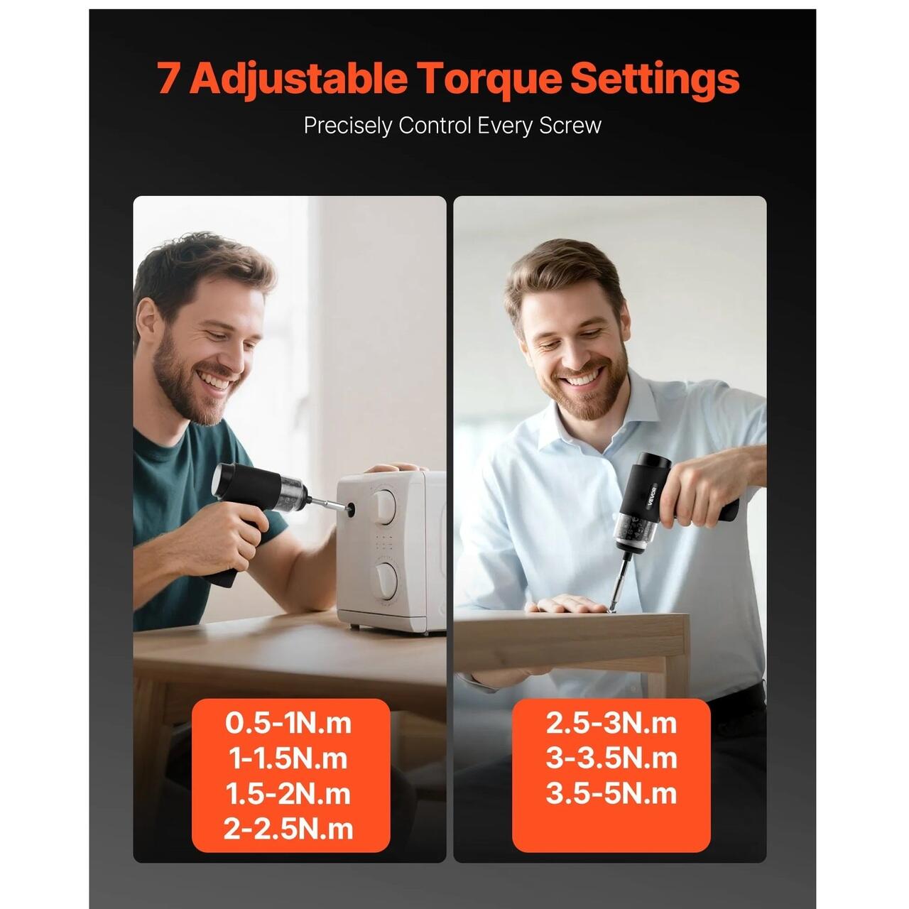 Actionare puternica si cuplu reglabil: Surubelnita noastra electrica dispune de setari de cuplu de 0,5-5 N•m si o viteza de 180 RPM, oferindu-va o insurubare lina pentru electronice mici, electrocasnice si reparatii zilnice, cu precizie si control.