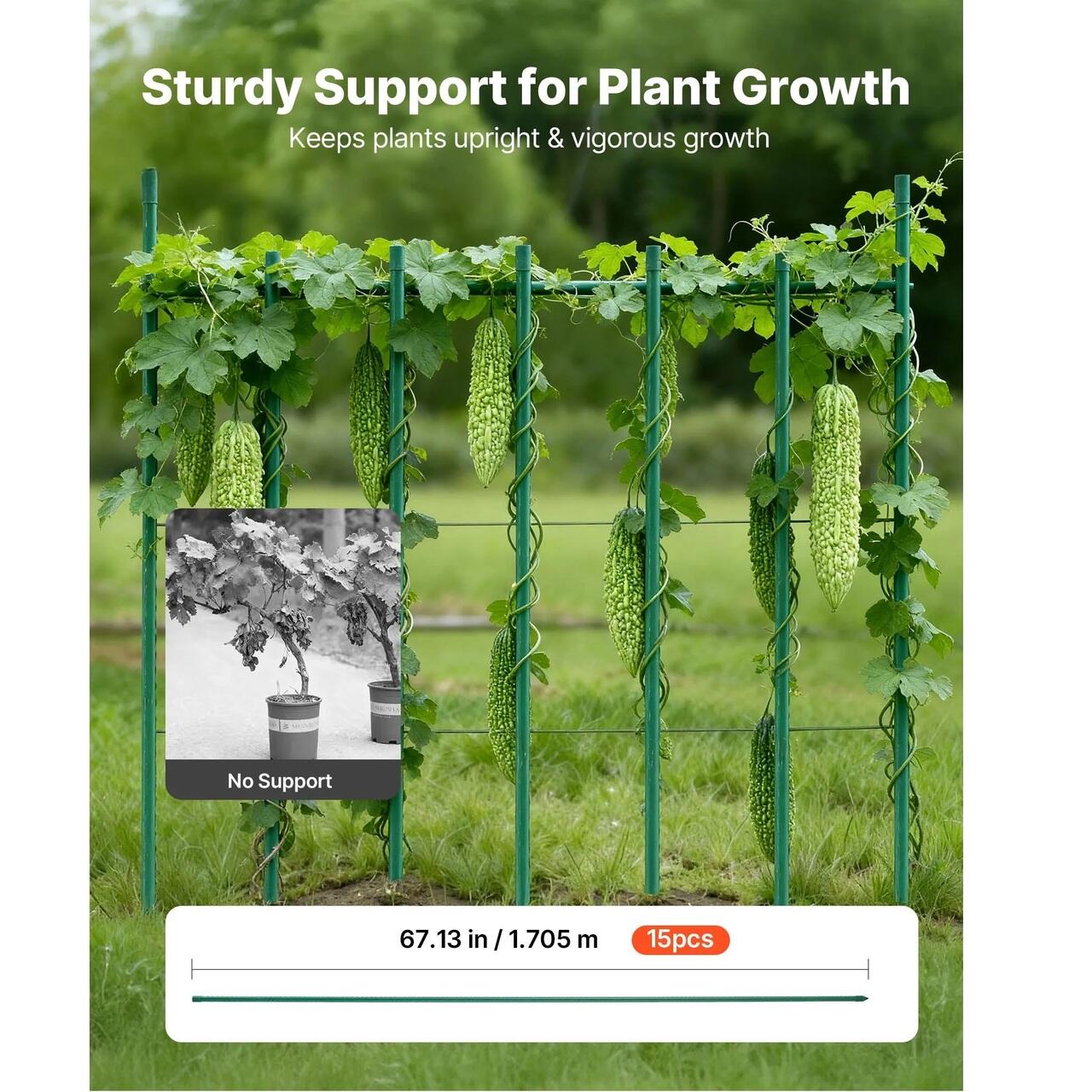 Set 15 de araci pentru gradina, Teava metalica acoperita cu PVC, Diametru 16 mm, Inaltime 1.7 m, Verde