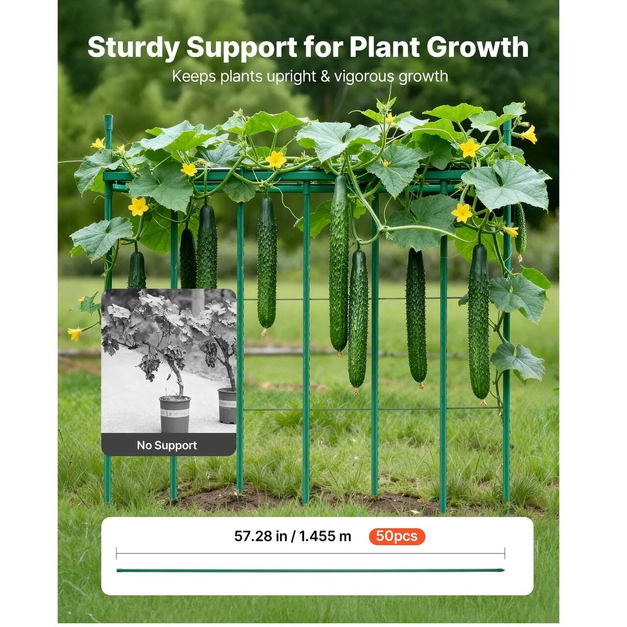 Suport robust pentru plante: Acest set de tarusi de gradina cu lungimea de 145 cm si diametrul de 1 cm include 50 de tarusi care sustin plante precum rosii, fasole si vita de vie. Pentru o rezistenta sporita, se recomanda o configuratie piramidala pentru a rezista rasturnarii si a promova cresterea verticala.