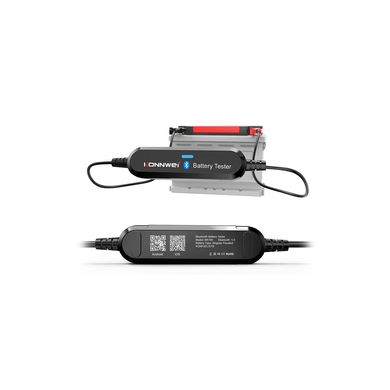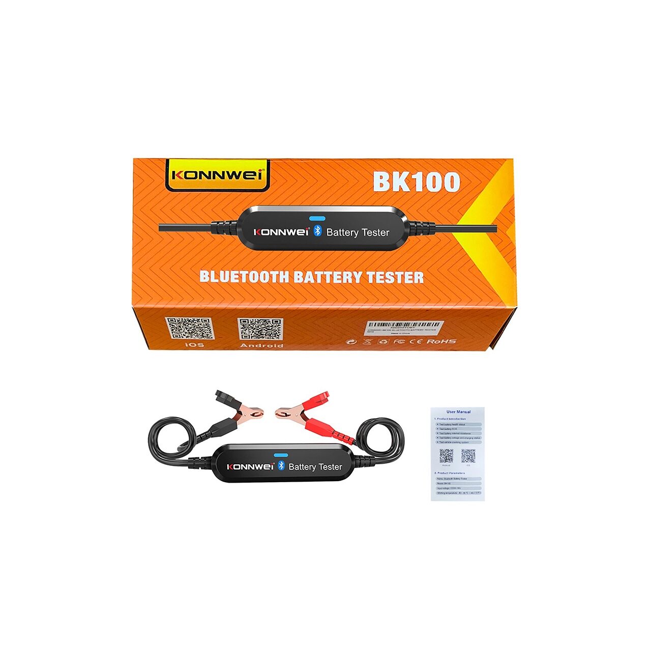 Diferit de metoda tradițională de testare. KONNWEI BK100 folosește cea mai nouă tehnologie Bluetooth pentru a detecta bateria mașinii, nu mai trebuie să stai în fața mașinii în așteptarea lucrărilor de testare, după ce ai conectat dispozitivul la bateria mașinii poți deschide aplicația pe telefon/tabletă pentru testarea bateriei mașinii. Cu testerul bateriei auto KONNWEI BK100, putem verifica starea generală de sănătate a bateriei, inclusiv testul de pornire și putem efectua un test complet de încărcare a sistemului. Testul de pornire este pentru a testa și analiza daca demarorul funcționează corect, iar testul de încărcare este de a verifica starea sistemului de încărcare pentru a evita deteriorarea bateriei. Testerul de baterii auto Bluetooth este compatibil cu toate bateriile plumb-acid de 6 și 12 volți, inclusiv bateriile obișnuite , AGM , GEL și EFB cu intervalul de testare (100-2000 CCA). Compatibil cu mașini, motociclete, camioane, RV-uri, ATV-uri, SUV-uri, bărci, iahturi, cositoare și chiar mașini de golf. KONNWEI BK100 este Plug-and-Play și oferă rapoarte de testare în câteva secunde, îmbunătățind considerabil viteza de testare în comparație cu alte testere de baterie. De asemenea, are o funcție de protecție la inversarea polarității. Inversarea clemei nu va deteriora testerul și nu va avea niciun efect negativ asupra mașinii și bateriei. KONNWEI BK100 poate testa în mod direct pierderea de energie a bateriei, nu este nevoie să fie mai întâi încărcata complet și testata. Suport pentru mai multe limbi, cum ar fi engleză, spaniolă, germană, rusă, italiană, franceză, portugheză etc. Limba actuală depinde de setarea limbii sistemului de pe telefonul/tableta.